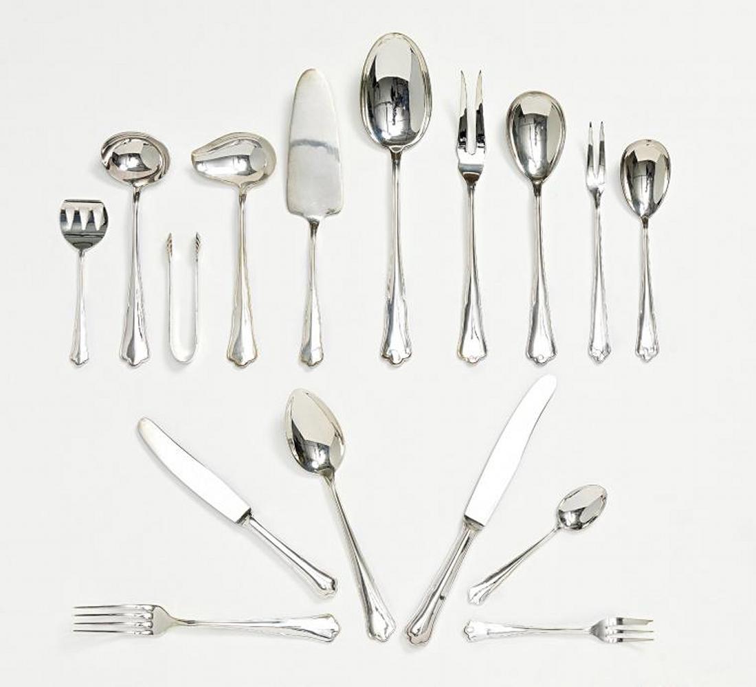Vorspeisegabeln, 12 Vorspeisemessern, 18 Kuchengabeln, 19 Kaffeelöffeln, 6 Vorlegegabeln