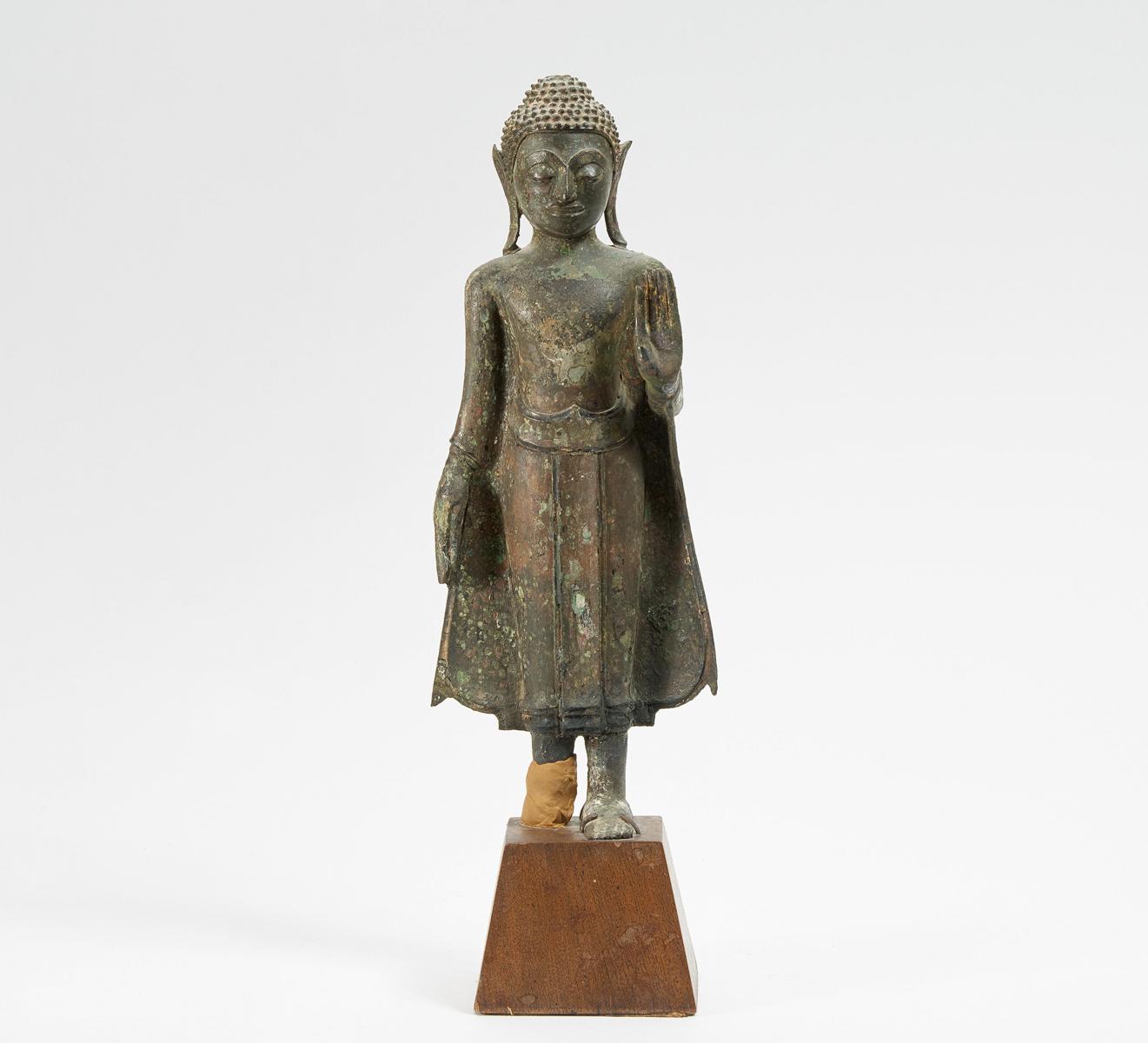 Technik: Bronze mit dunkler, teils grünlich gefleckter Patina.