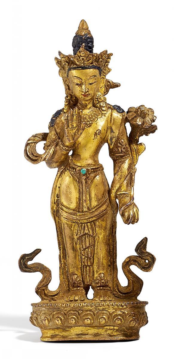 Technik: Kupferbronze mit Feuervergoldung und kultischer Bemalung.