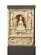 Beschreibung: Im Zentrum sitzt in einer von einem Baldachin überwölbten Nische ein fast vollplastischer