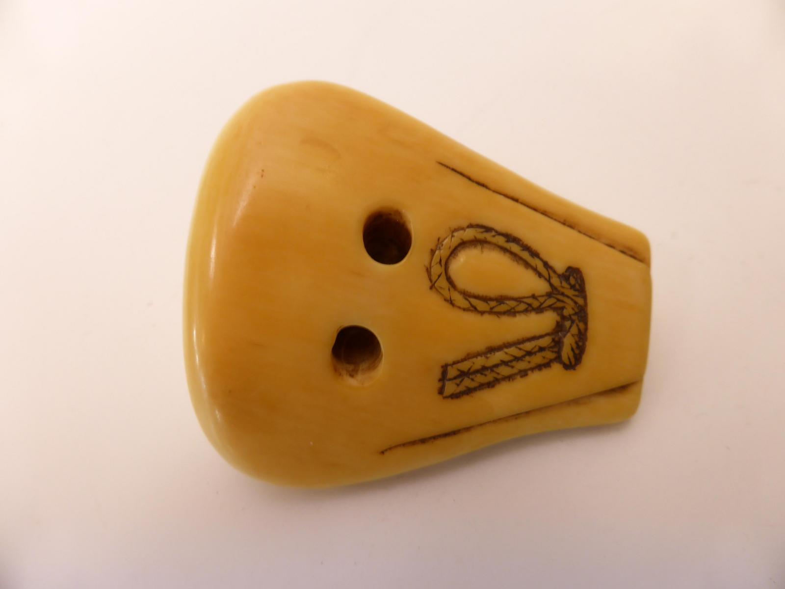 Technik: Elfenbein, fein geschnitzt, graviert und wenig eingefärbt. Schöne Gebrauchspatina.