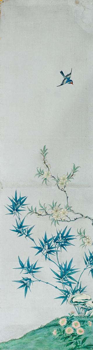 TAPETE MIT VOGEL-UND-BLUMEN-MALEREI.