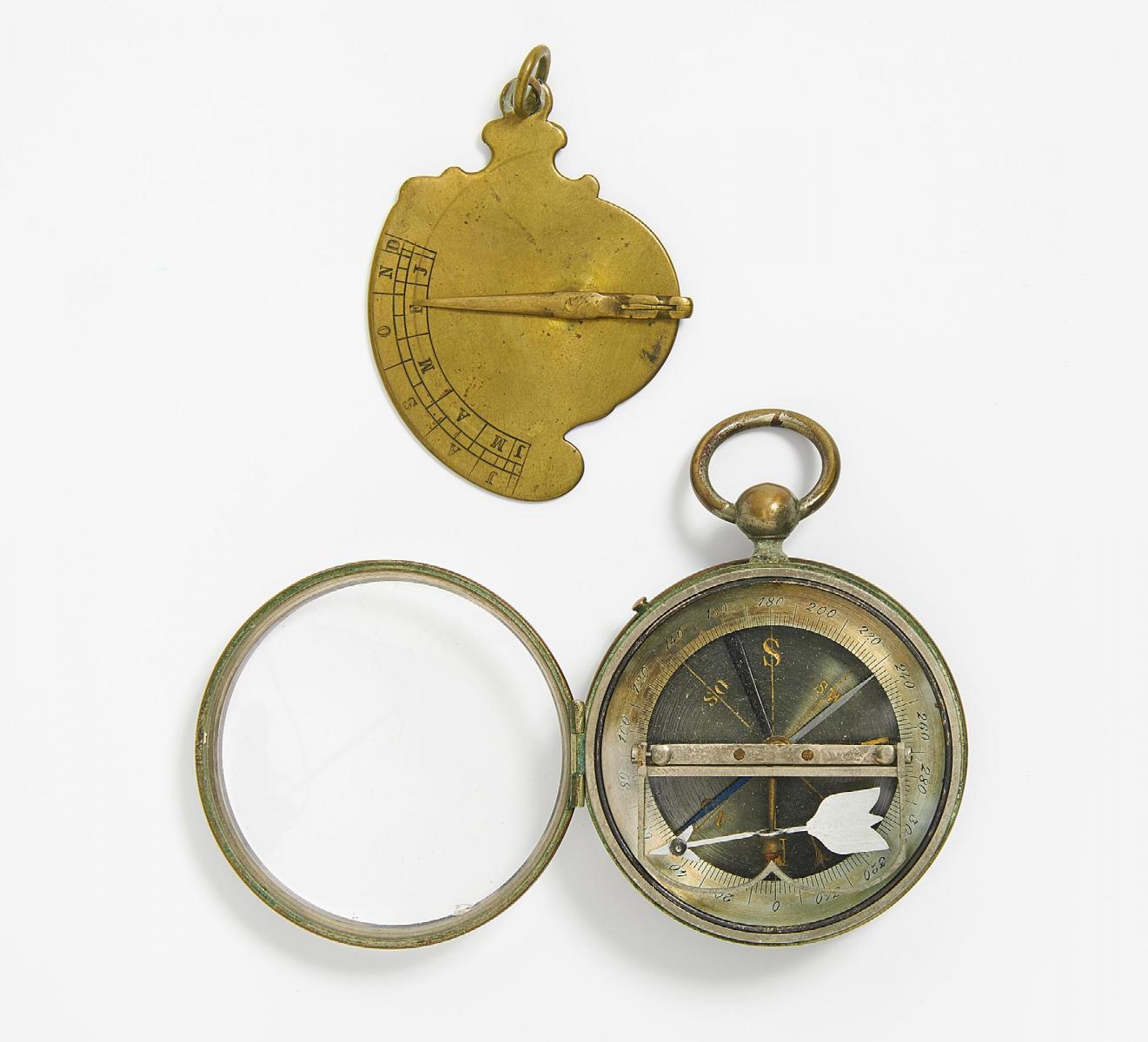 TASCHENKOMPASS MIT WINDMESSER UND THERMOMETER.