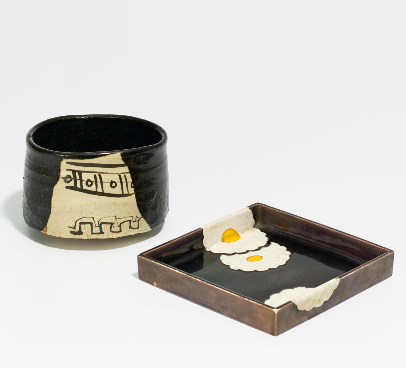 Teeschale (chawan) und quadratischer Gebäckteller.