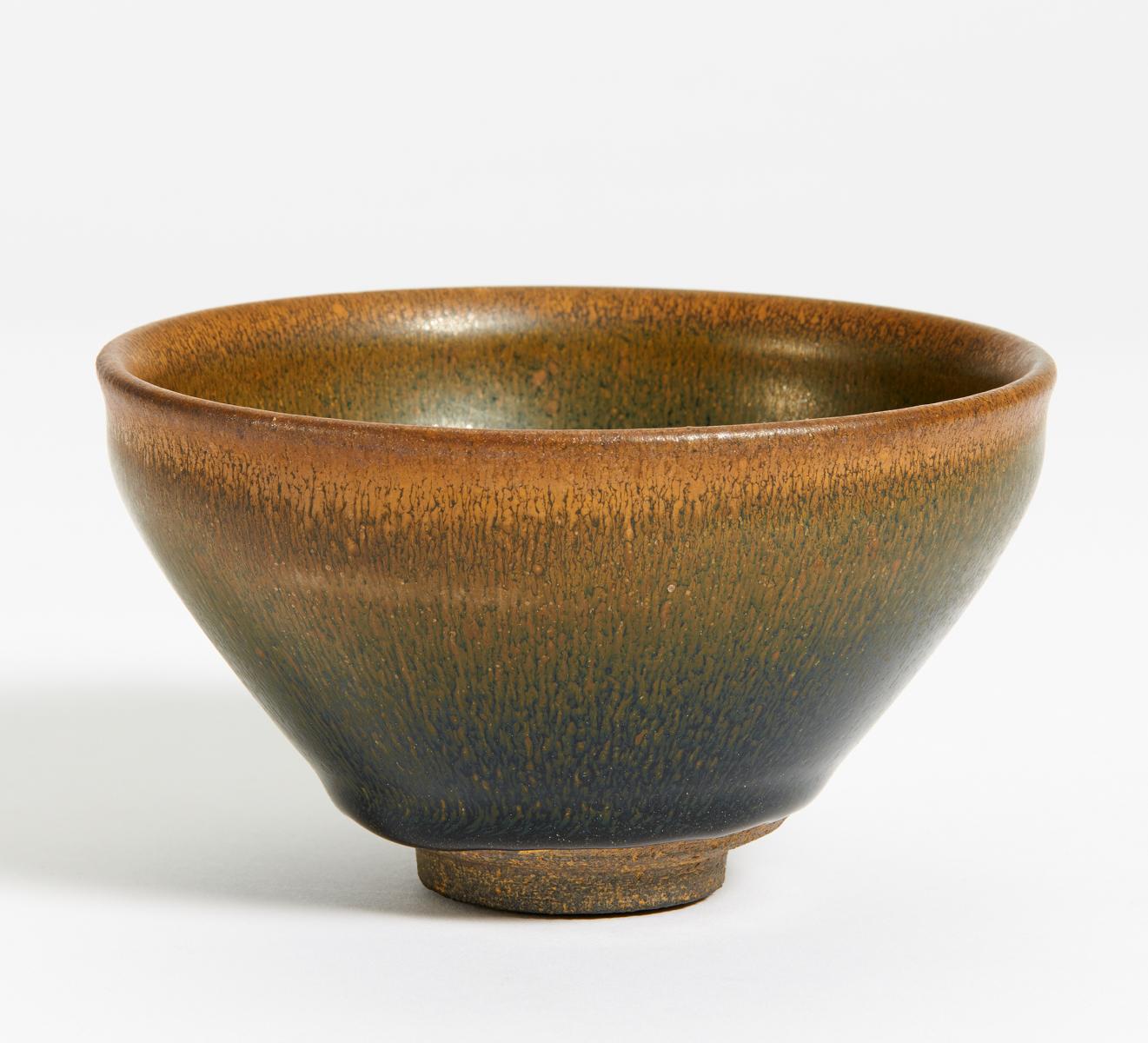Technik: Braunes Jian-Steinzeug, bedeckt mit dicker schwarz-brauner Hasenfellglasur.