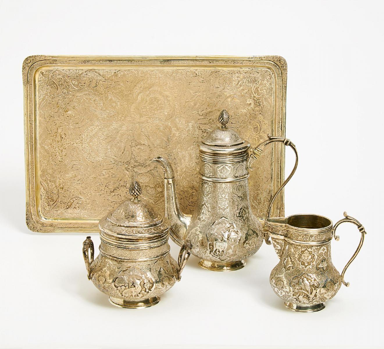 TEESERVICE MIT ORIENTALISCHEM GRAVURDEKOR.