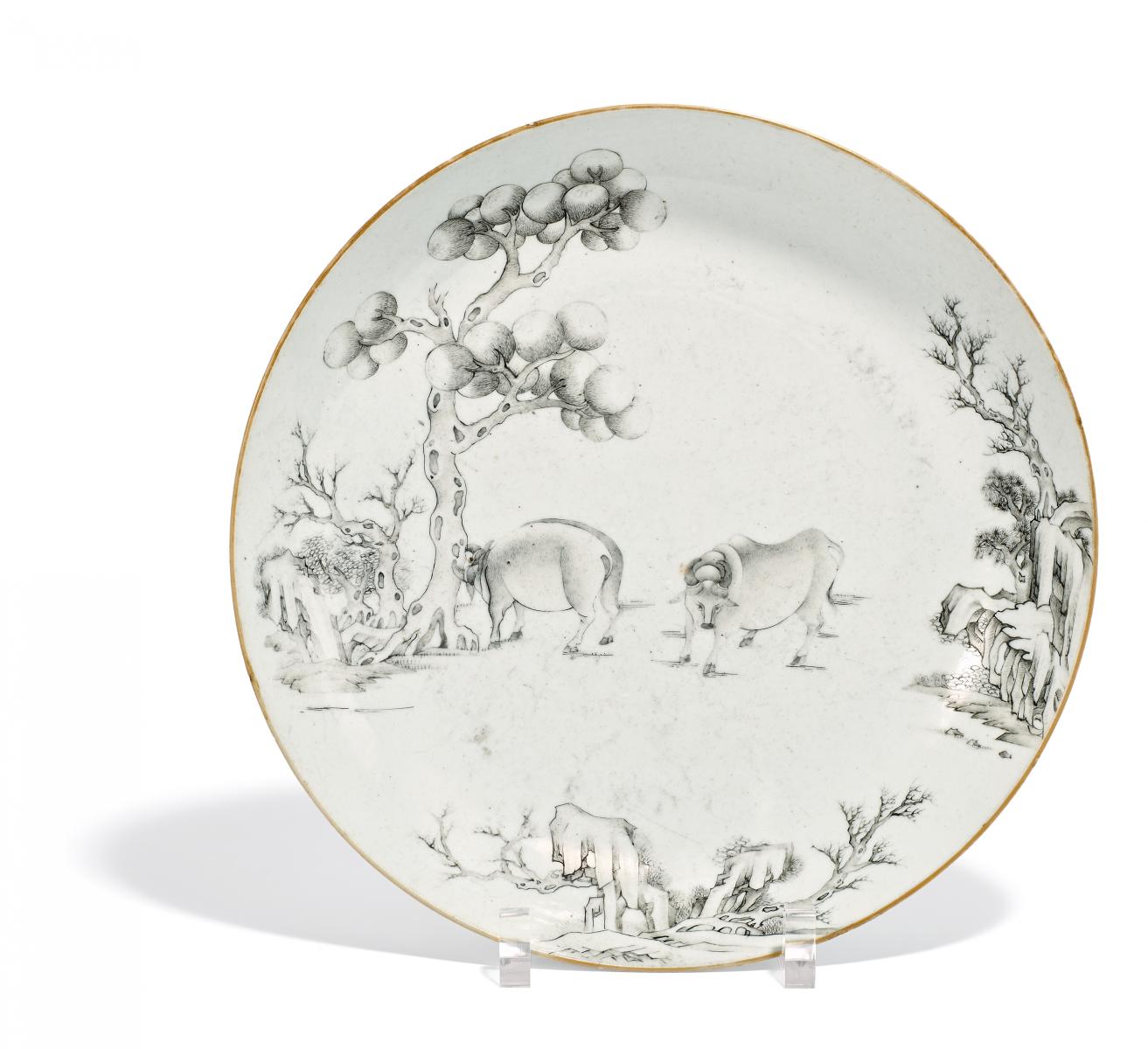 TELLER MIT GRISAILLE-MALEREI. PORZELLAN.