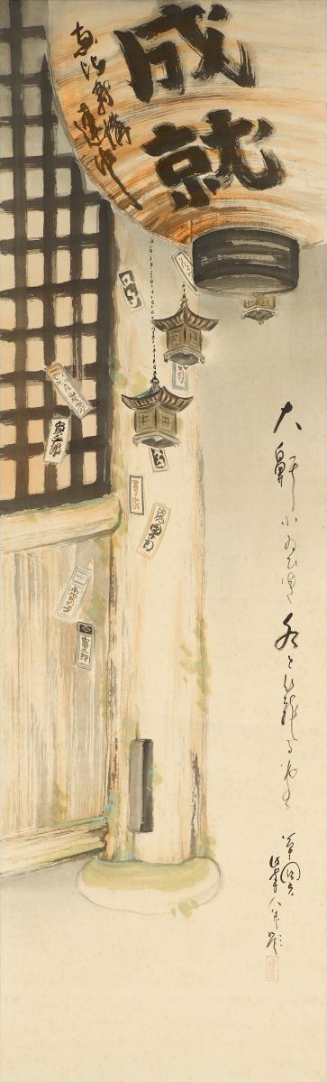 Titel: Tempeltor mit Laternen und Ofuda-Amuletten. Malerei.