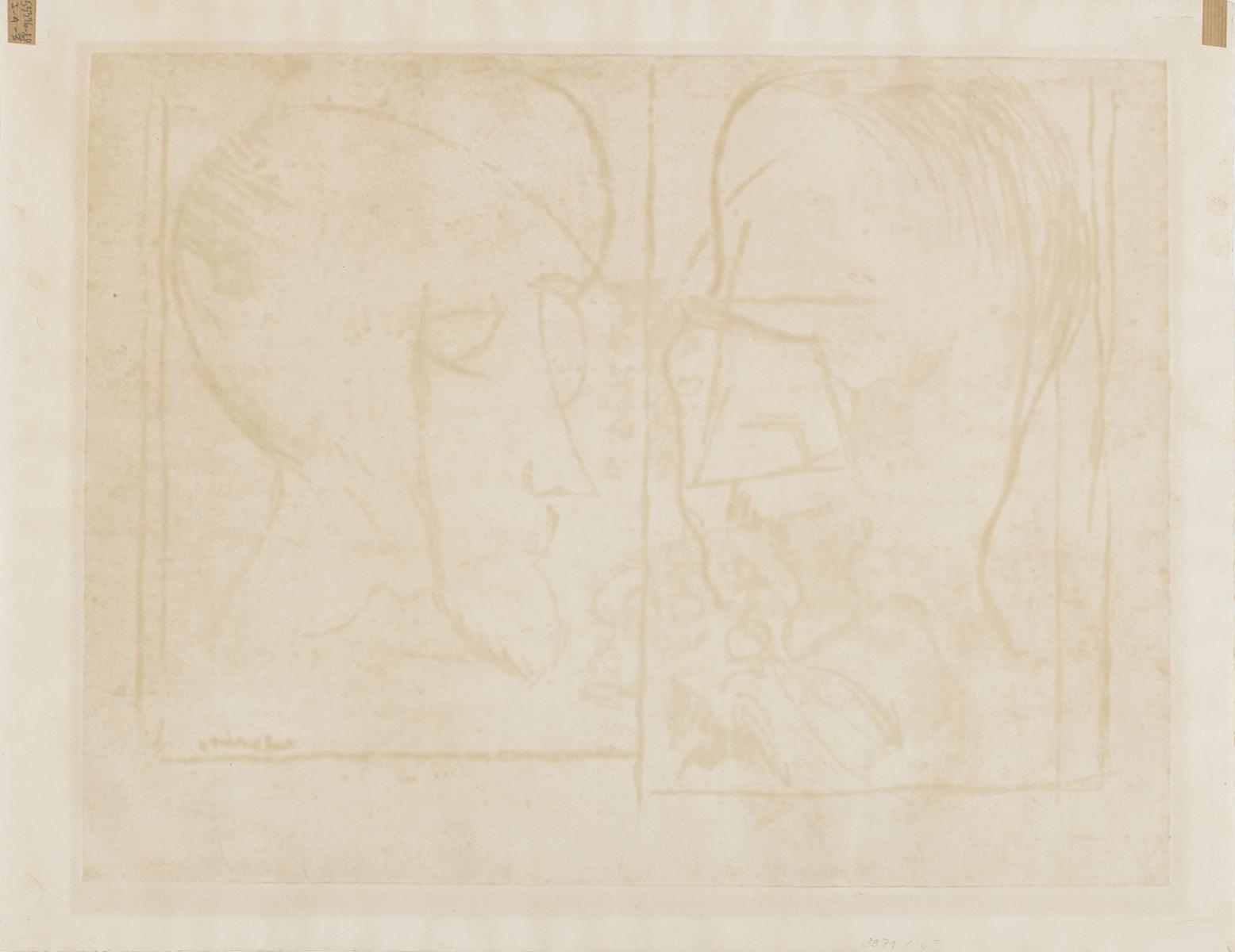 The chess players. 1965. Radierung auf MONUMENTA CATALONIA (Wasserzeichen). 44 x 57,5cm (51 x 65,5cm). Signiert, datiert und nummeriert. Ex. 39/50. Rahmen.