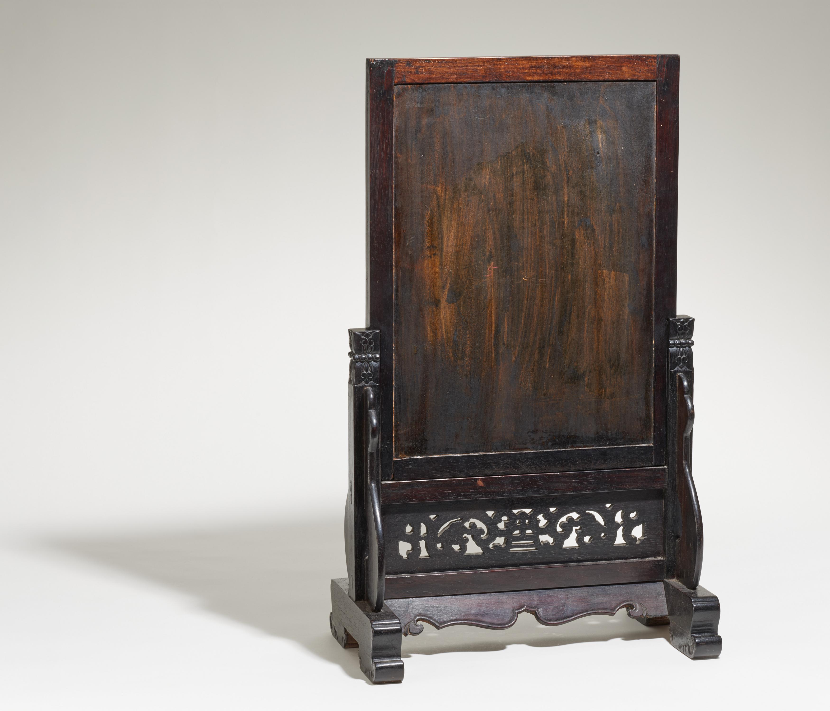 Rahmen/Sockel: Holzrahmen mit Gestell. Gesamthöhe 77,5cm, Breite 45,5.