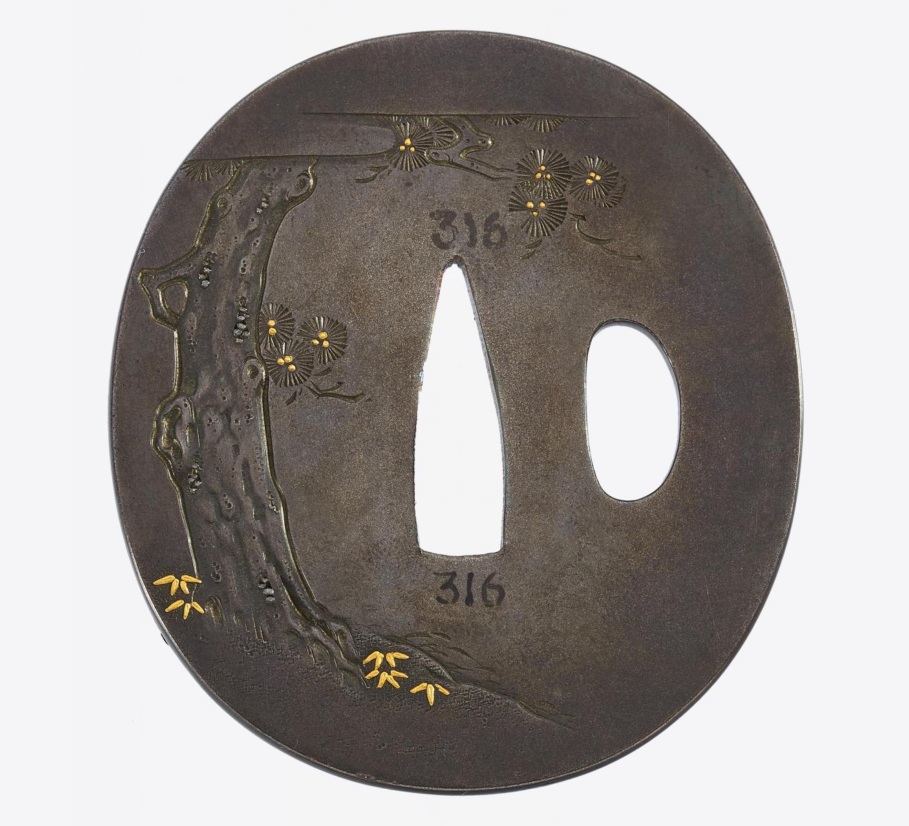 -Alte Sammlungs-Nr. 429, zusätzlich auf dem Tsuba Nr. 316 einer früheren Sammlung, gekauft 1985.