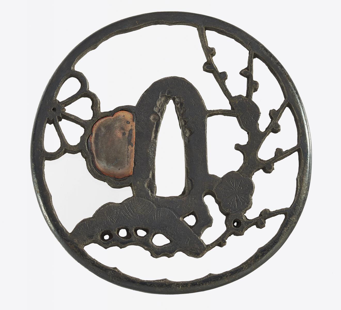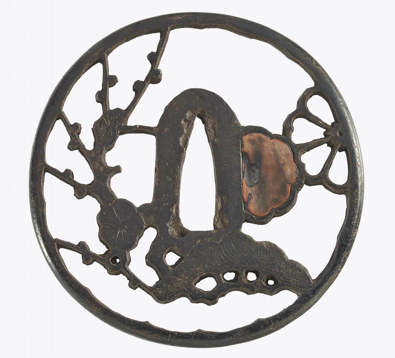 TSUBA. KIEFER UND PFLAUMENZWEIGE.