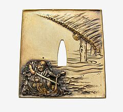 Beschreibung: In vollplastischem Relief mit feiner Gravur Yojo mit seinem Schwert das Gewand des Königs