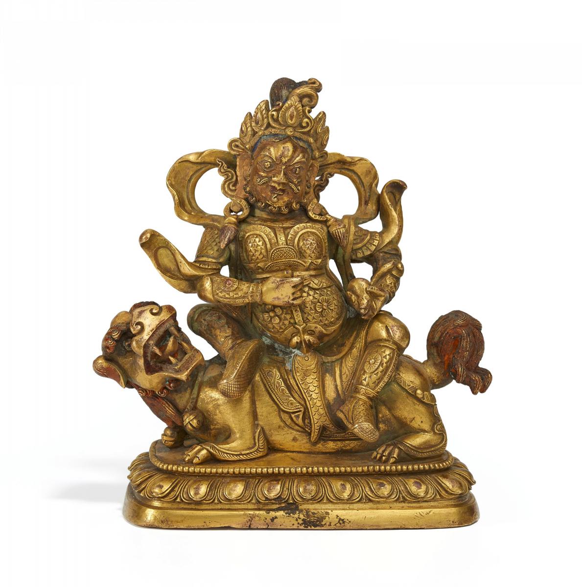 Technik: Messing mit Resten von Vergoldung und Pigmenten.