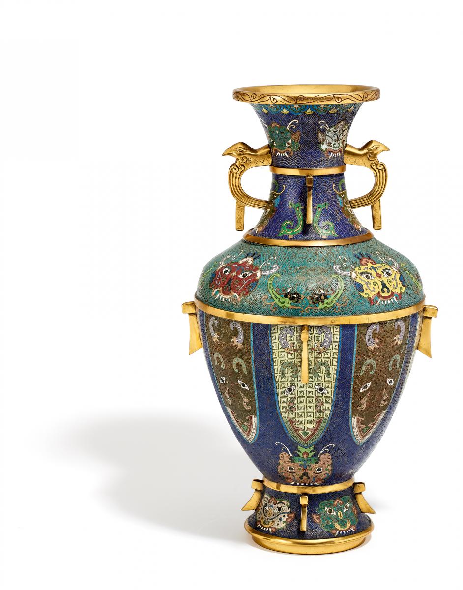 VASE MIT ARCHAISIERENDEM DEKOR. CLOISONNÉ.