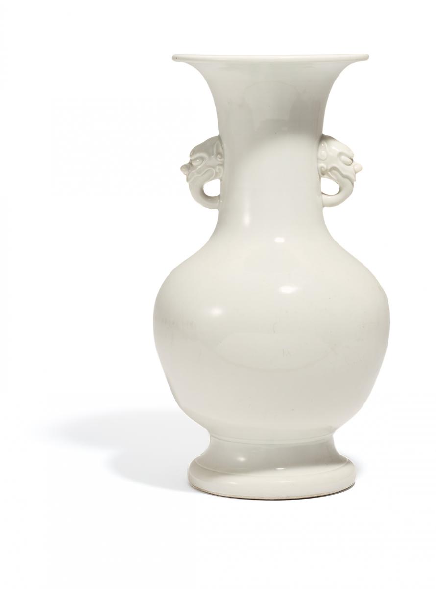 VASE MIT ZWEI BAKU-KÖPFEN. PORZELLAN.