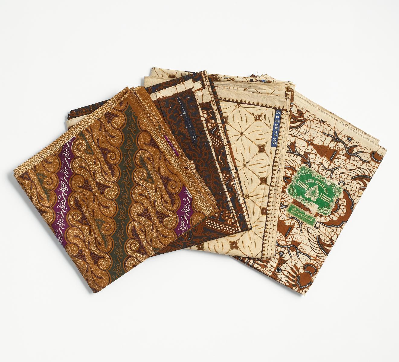 VIER BATIKTÜCHER, TEILS MIT ORIGNALETIKETTEN.