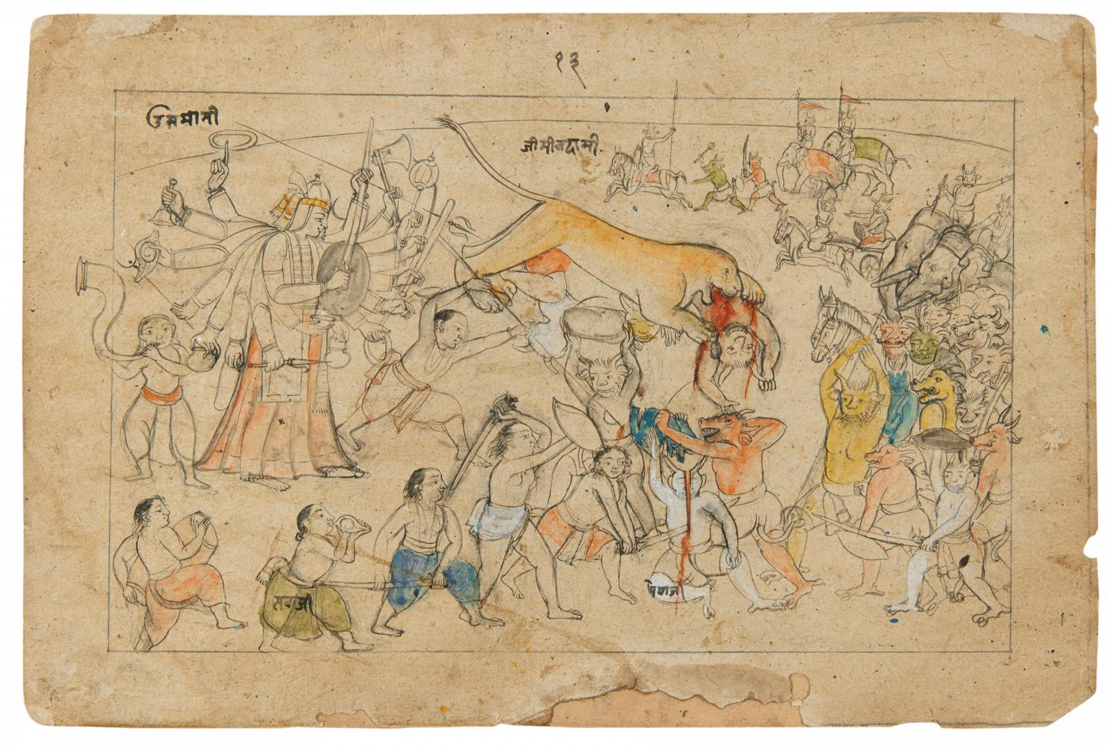 Zustand A/B. Beilage: Sechs Skizzen für Miniaturen. 20x30cm. 1x Miniatur mit Engländer. 1x Buchdeckel Holz, bemalt. Indien. 19./20. Jh. Zustand A/B.