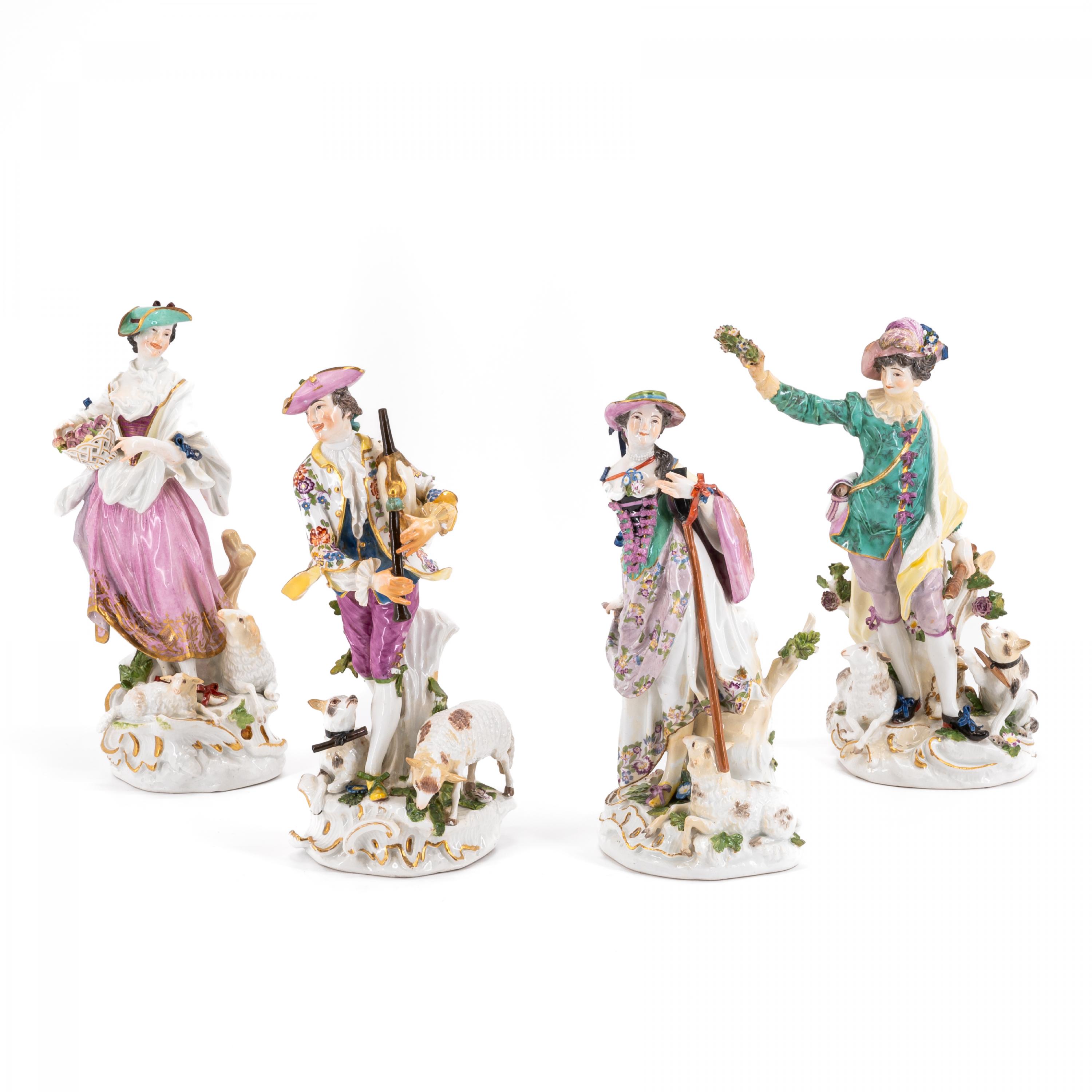 VIER GROßE SCHÄFERFIGUREN AUF ROCAILLESOCKELN