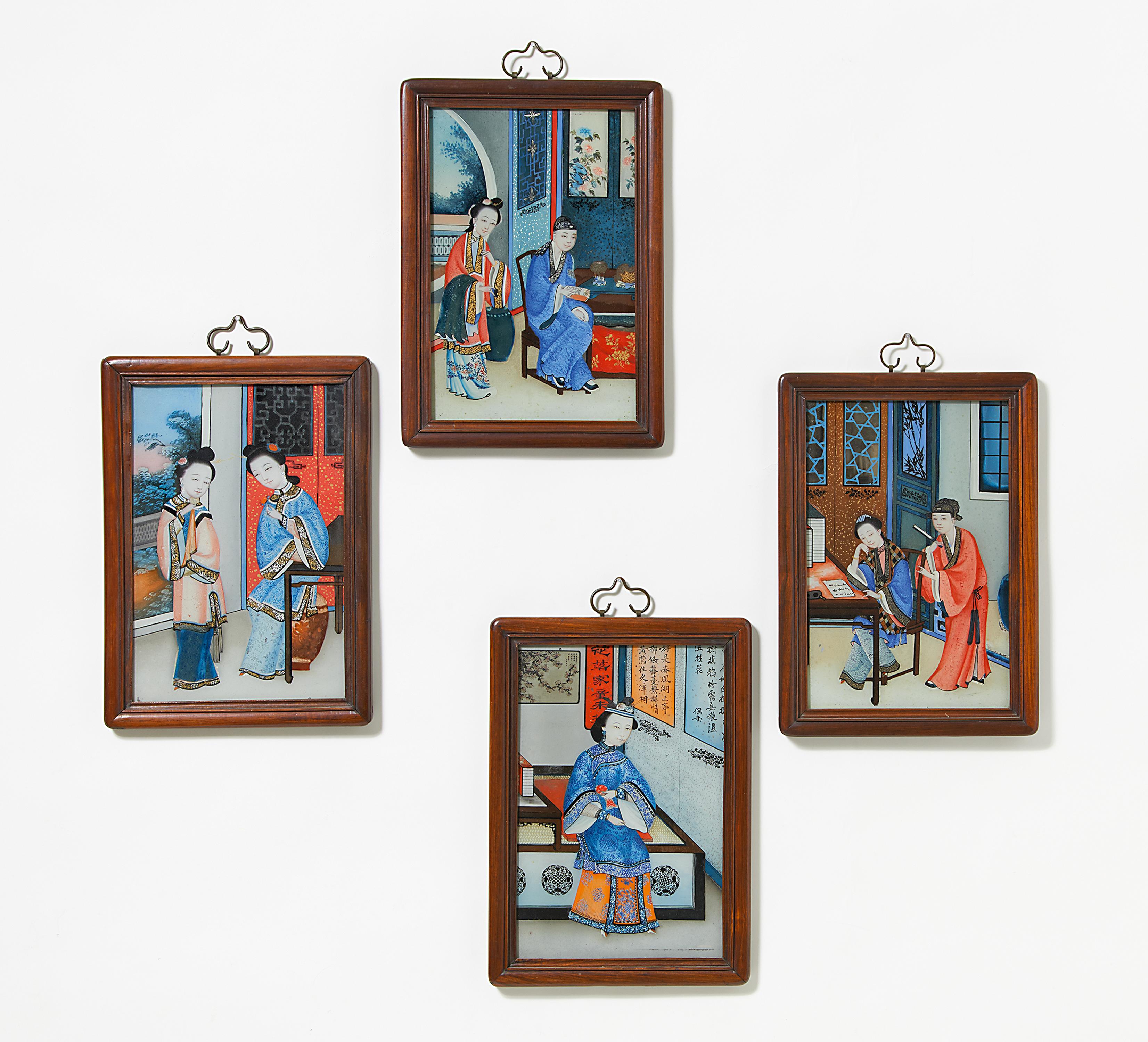 VIER HINTERGLASBILDER MIT SCHÖNHEITEN.