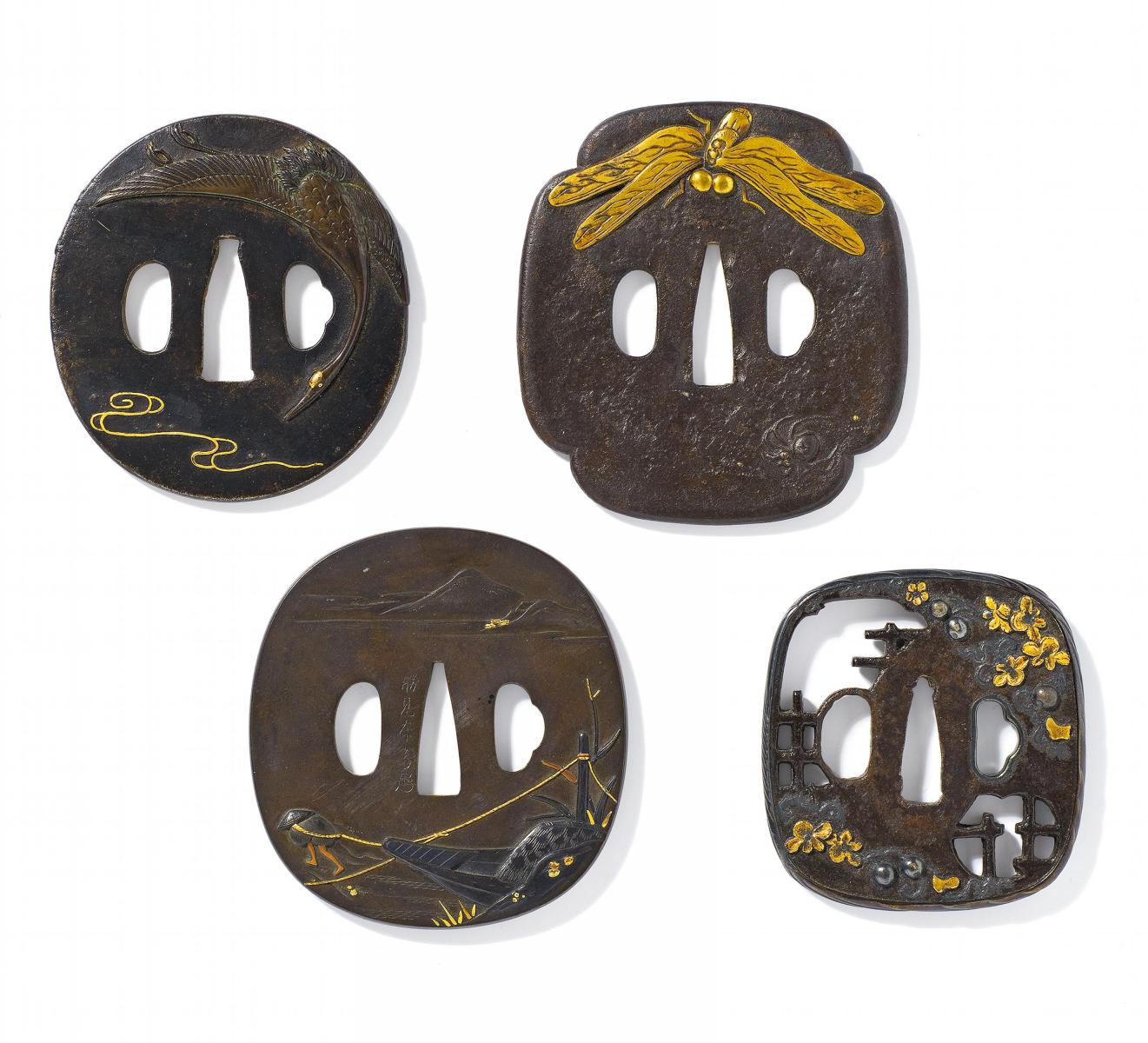 & kakihan. 18. Jh. Bronze mit shakudô, Gold und Kupfer. b) Naga marugata, maru mimi.