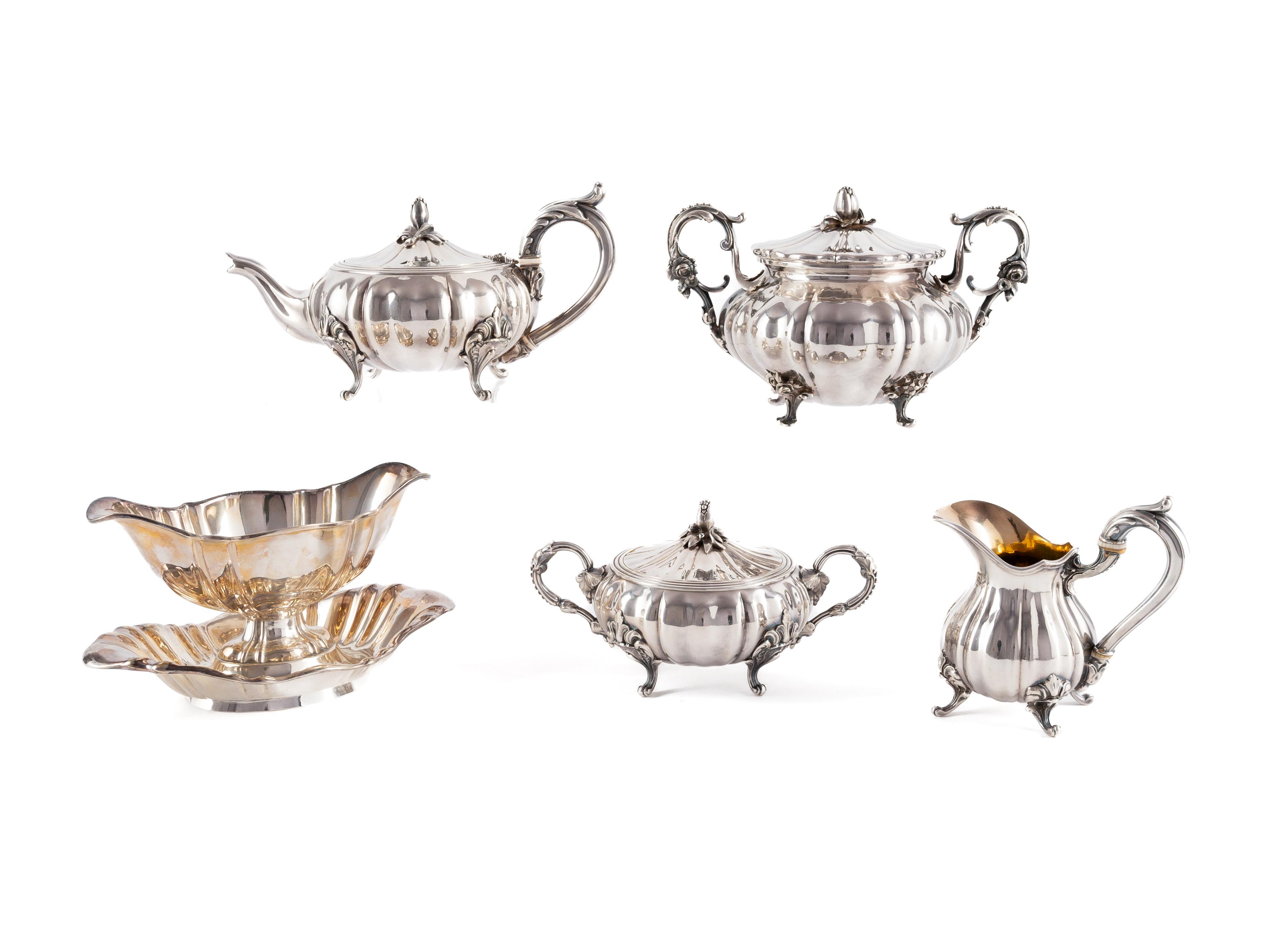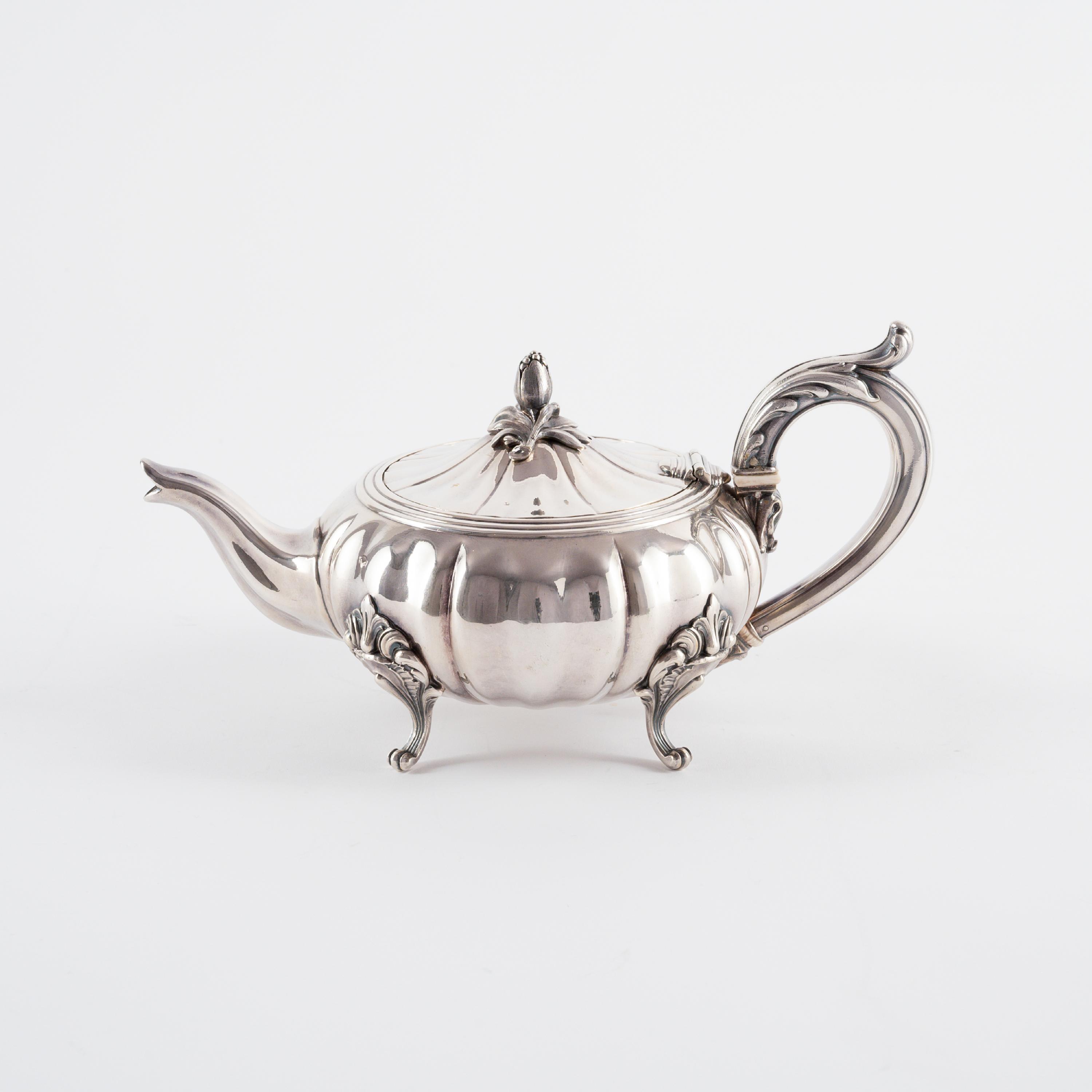 Bestehend aus Teekanne, Konfektdose, Zuckerdose und Milchkännchen. .