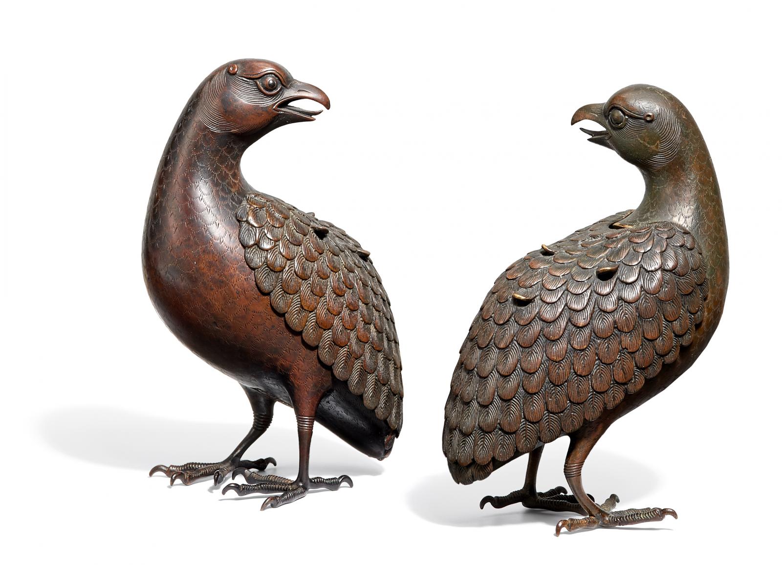Quail Incense Burner by Female Metal Caster Kamejo - Cire perdue bronzes from the Edo period.