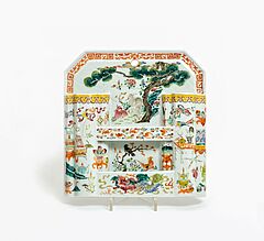 Beschreibung: Zwei Vasen um eine Briefablage im Zentrum.