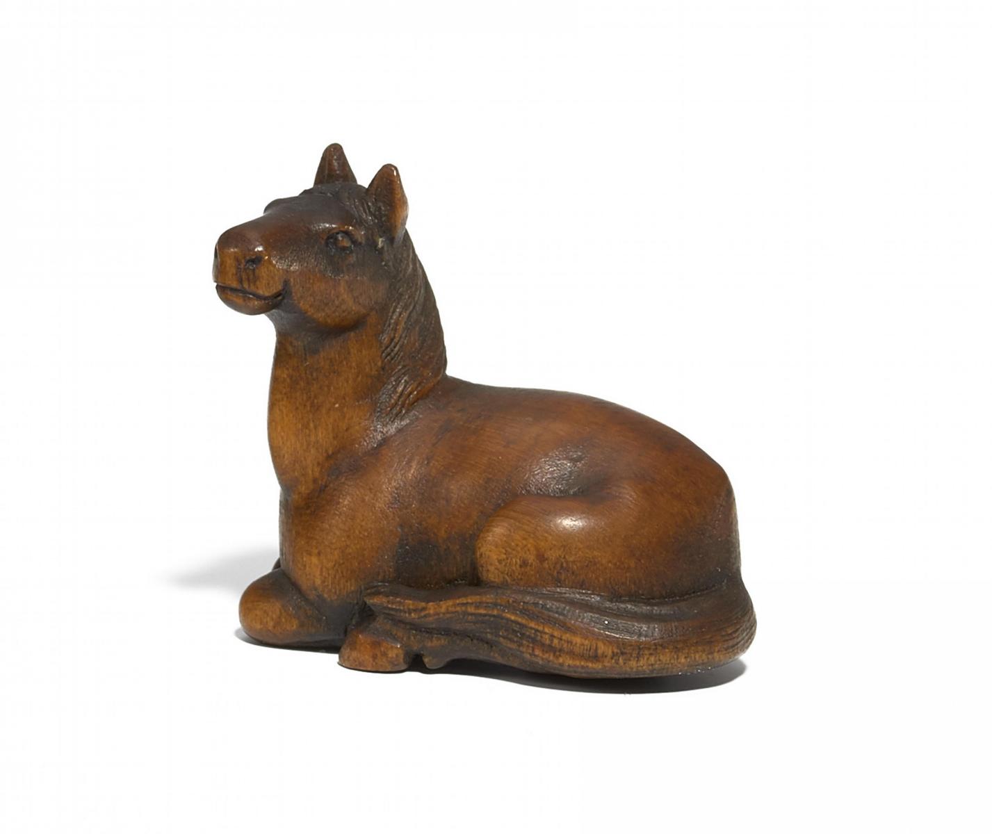 Technik: Buchsbaum, Mähne und Schwanz fein graviert und leicht eingefärbt.