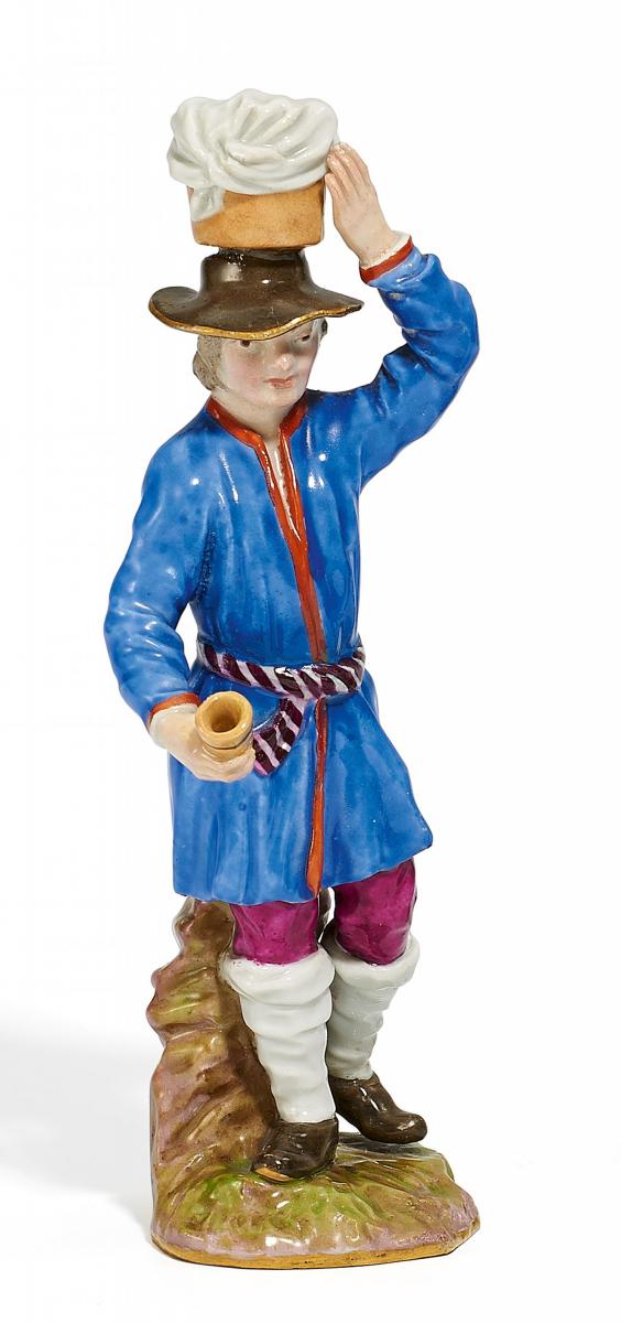 Porzellan, farbig und gold staffiert. Höhe 17,5 cm.