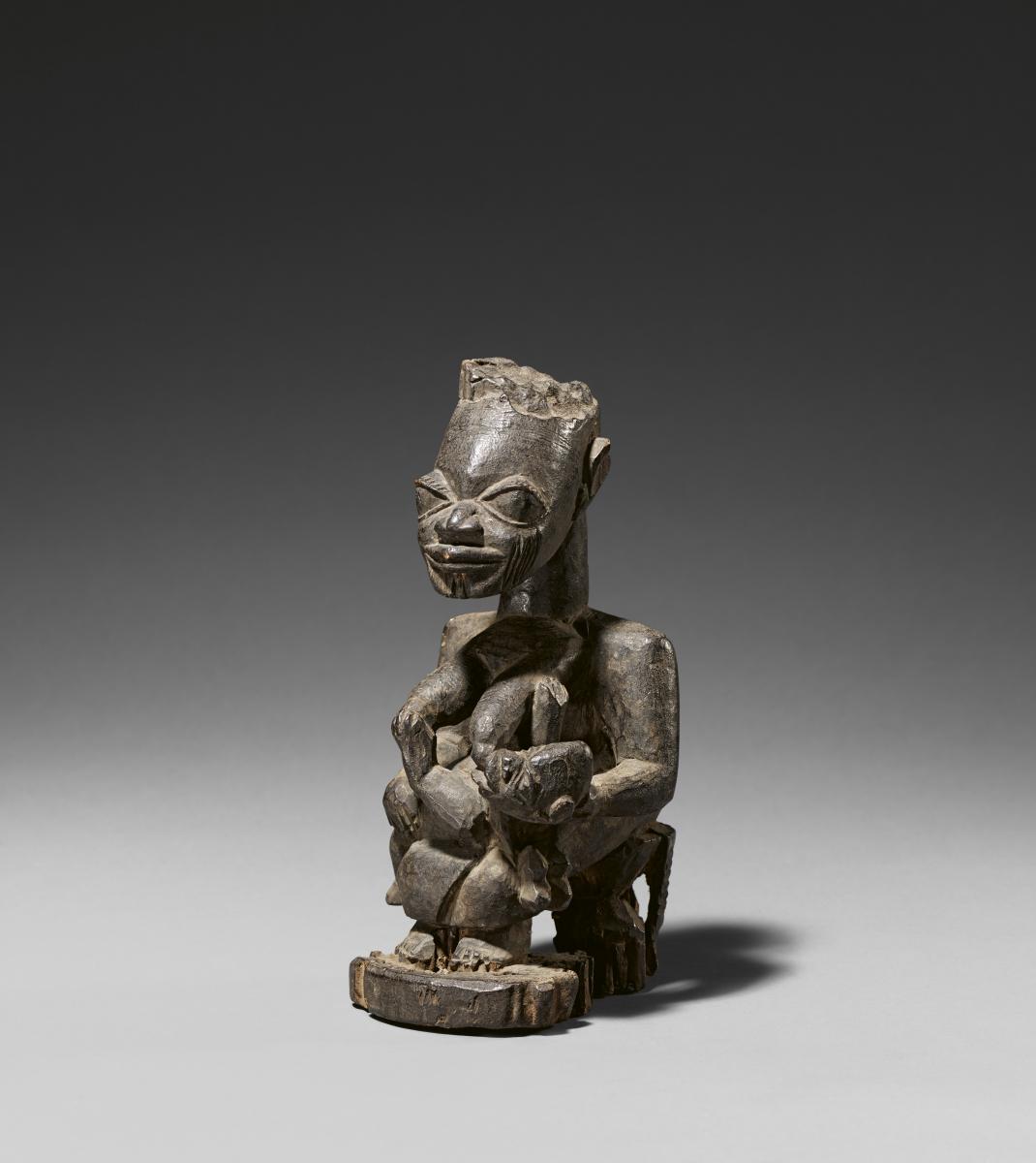 Untertitel: Mutter mit Kind-Figur, Fragment einer Ifa-Orakel-Schale.