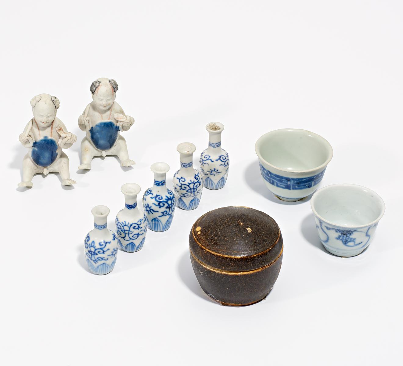 A,B,C) Tek Sing Cargo, 5.2.1822 gesunken. D) Fünf Miniaturvase. H.5cm. Vung Tau Cargo,