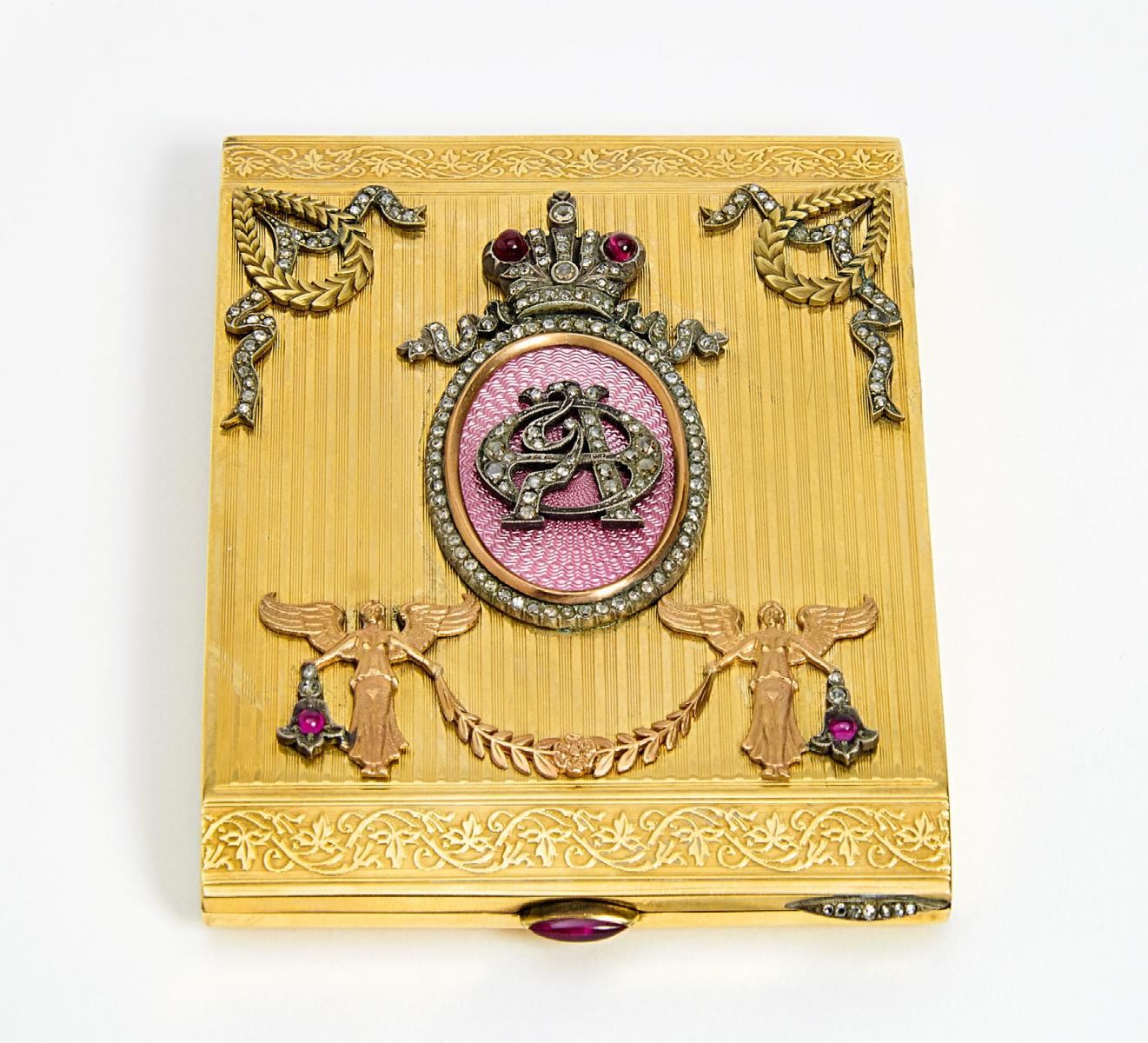 Technik: Gold, Silber, transluzides Email, Steinbesatz.