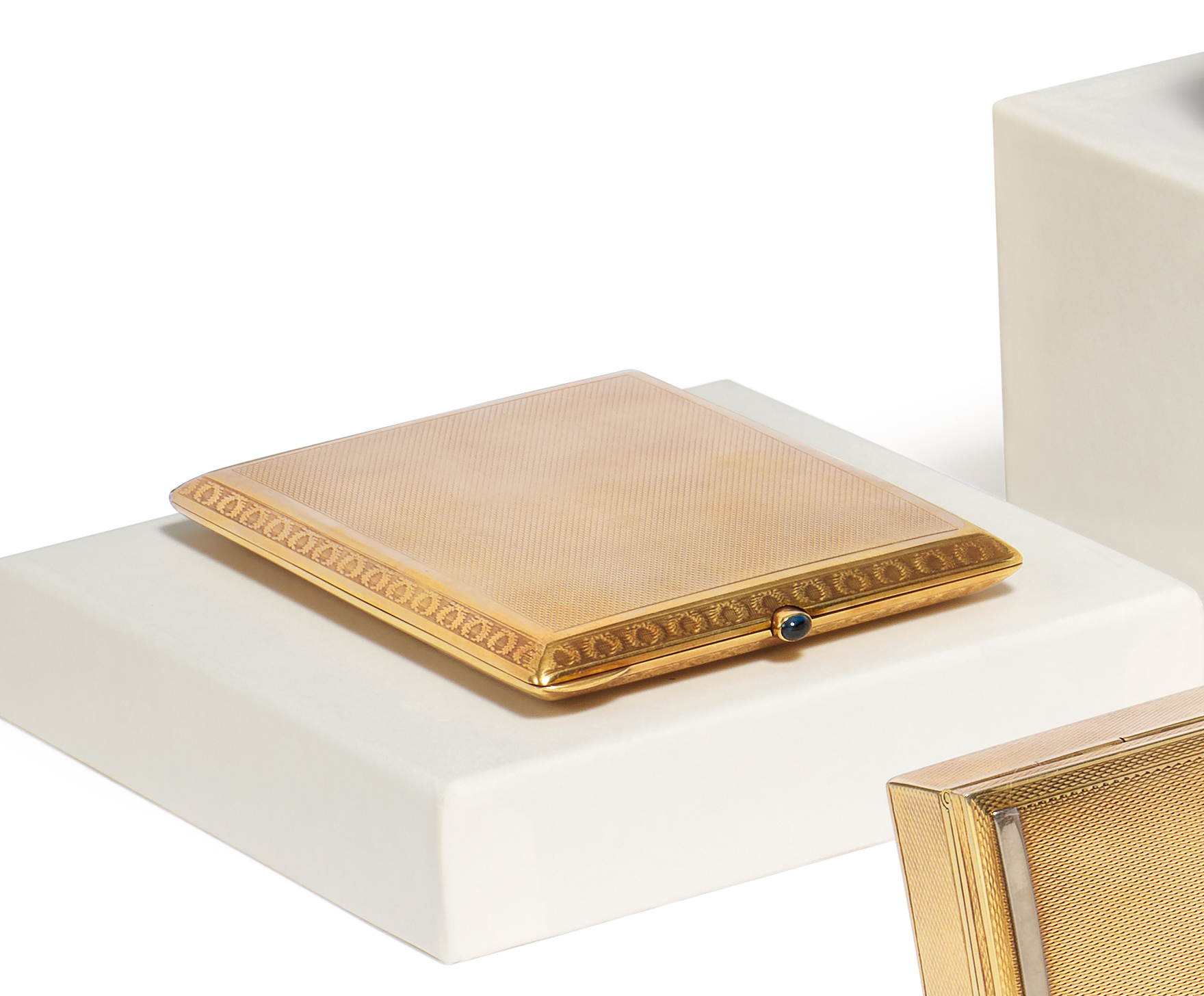 ZIGARETTENETUI MIT SAPHIRCABOCHON.