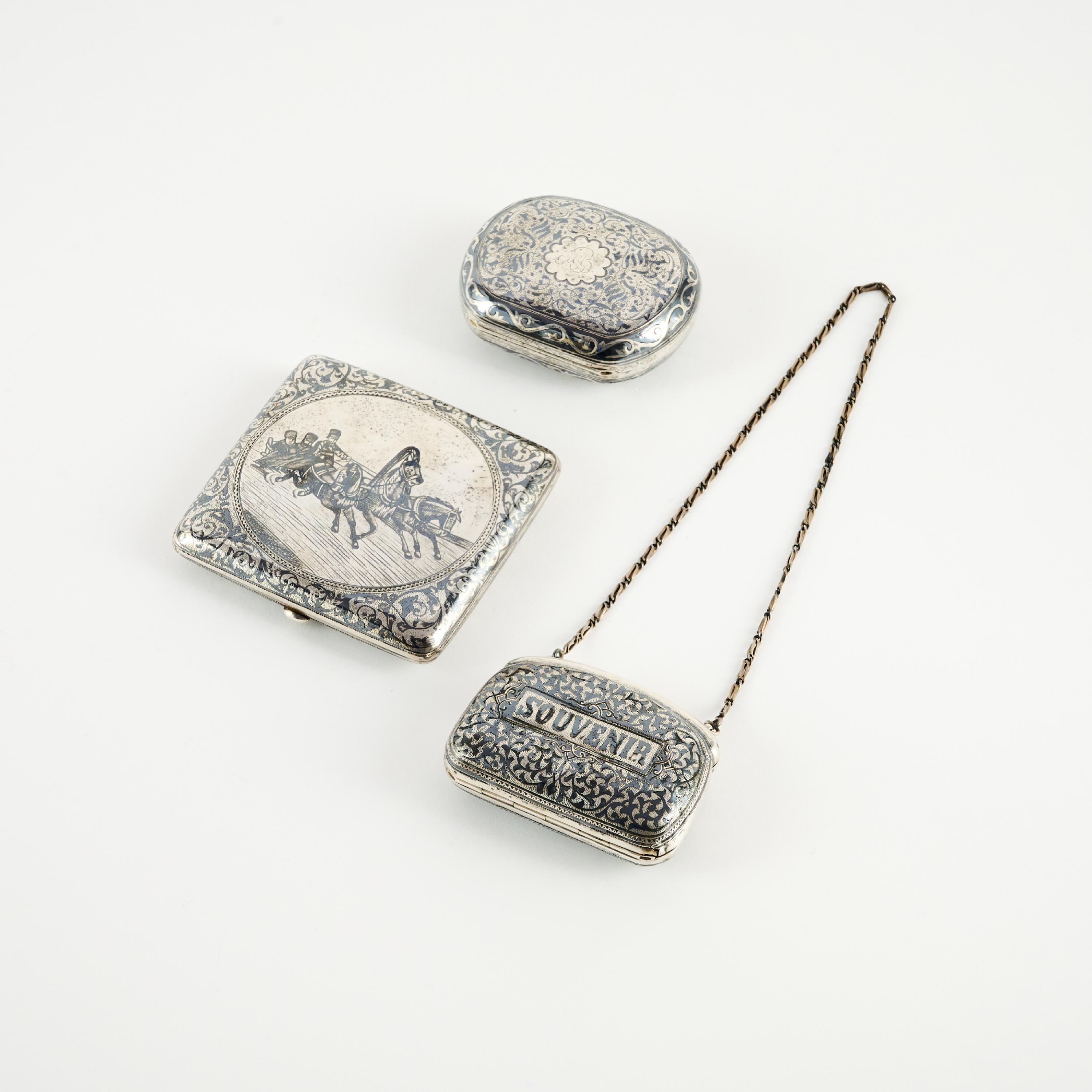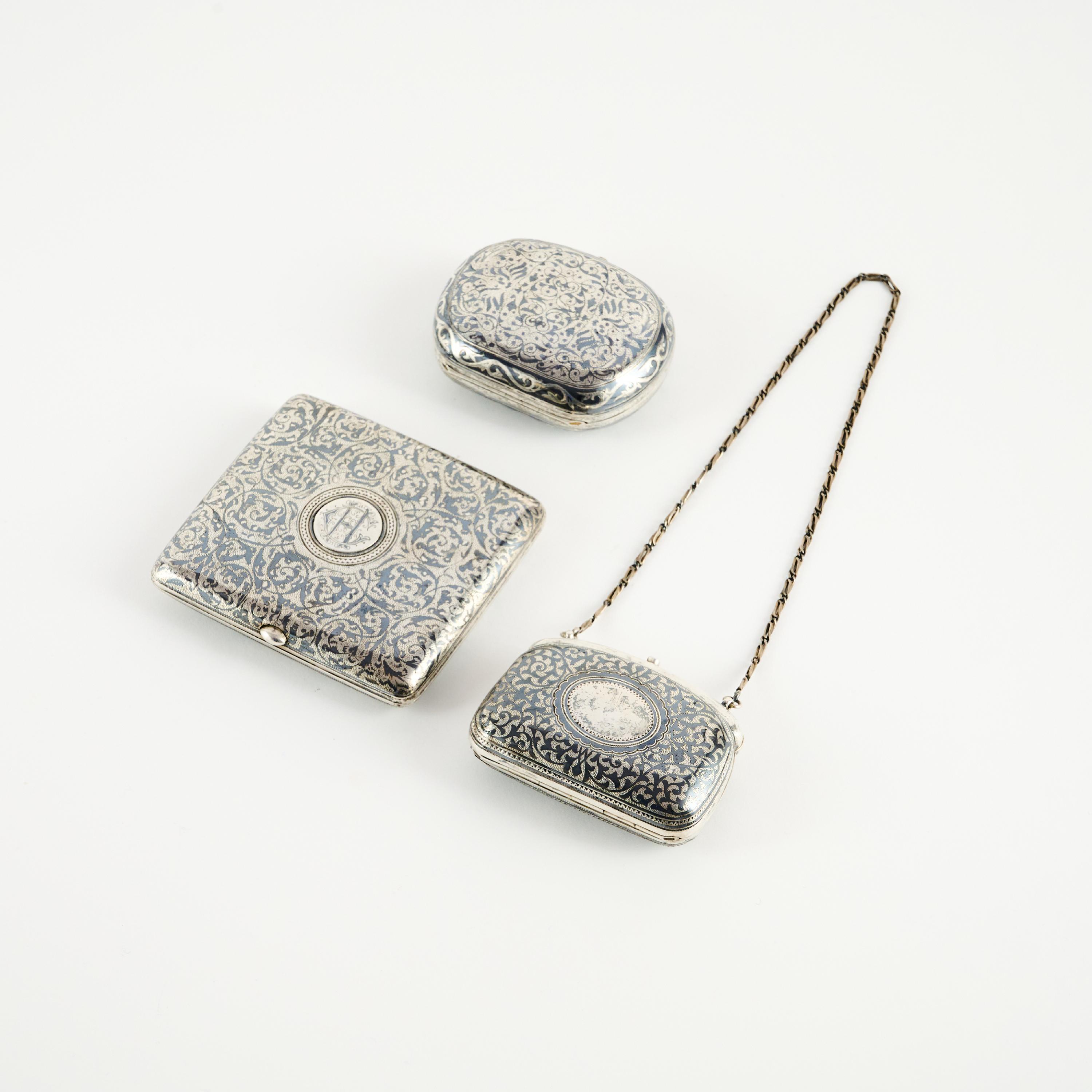 ZIGARETTENETUI MIT TROIKA UND EINE KLEINE GELDBÖRSE MIT NIELLODEKOREN.