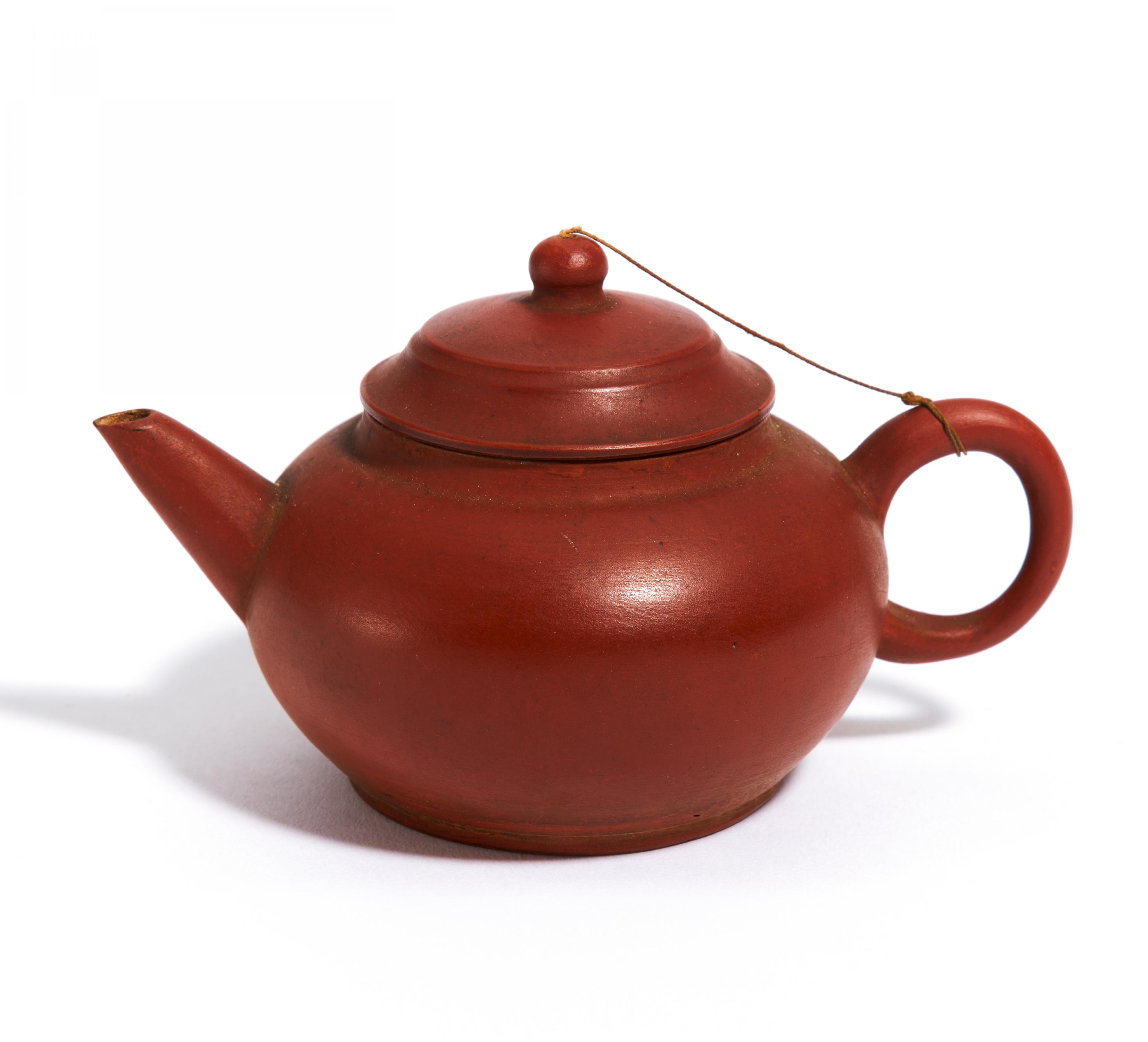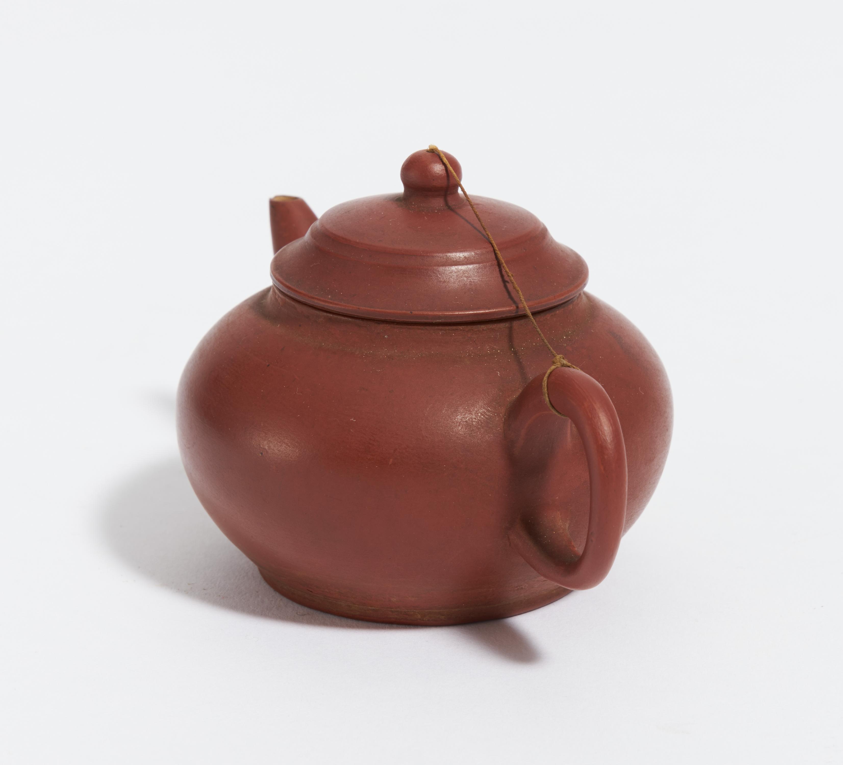 Technik: Zinnoberrotes Feinsteinzeug. Dünnwandig getöpfert und poliert.