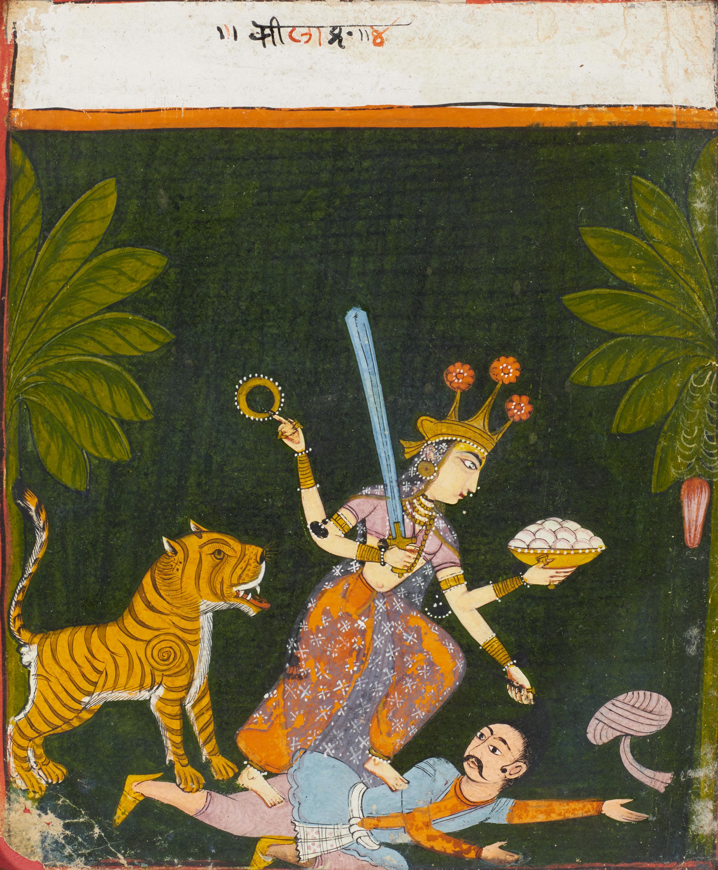 ZWEI BILDER MIT DER GÖTTIN DURGA.