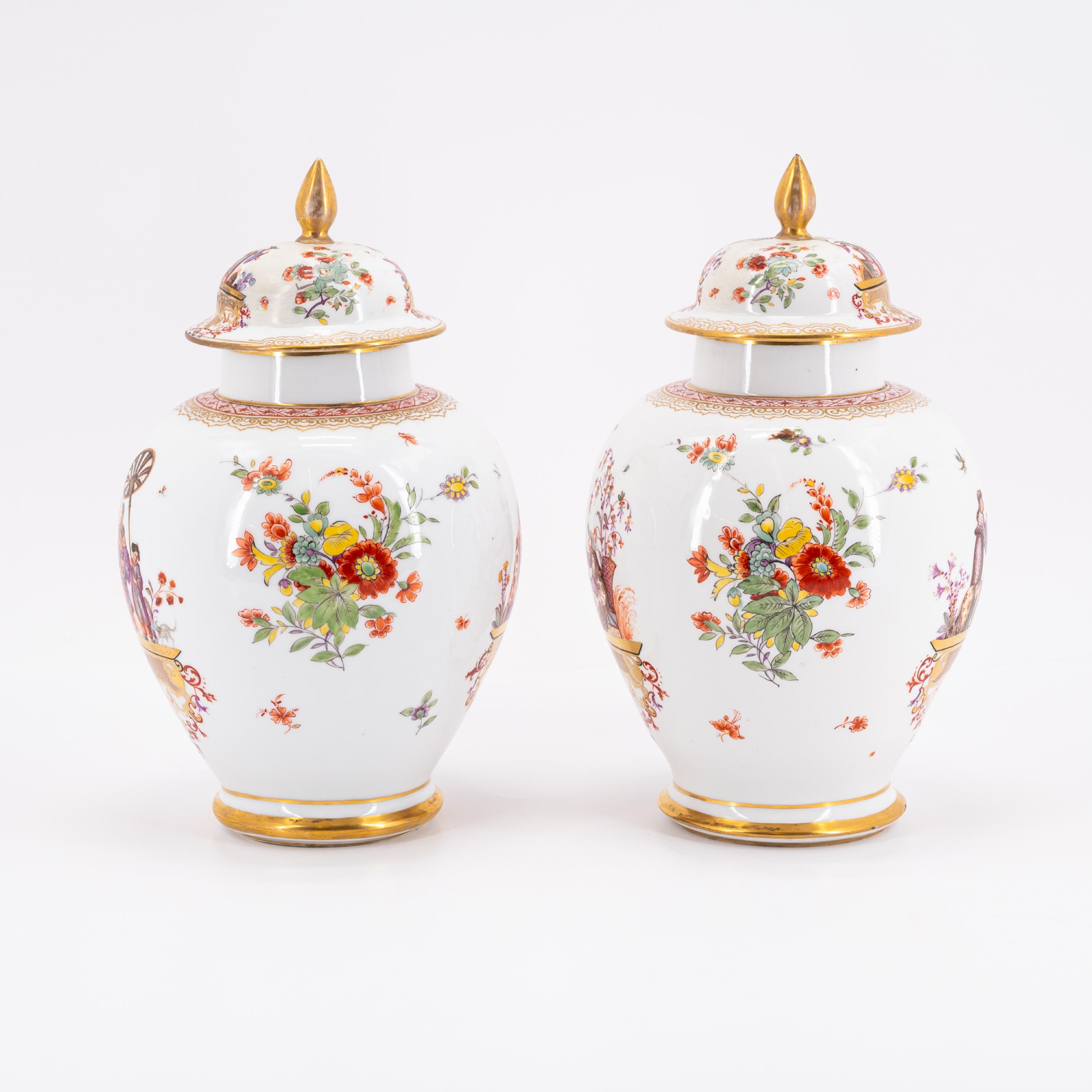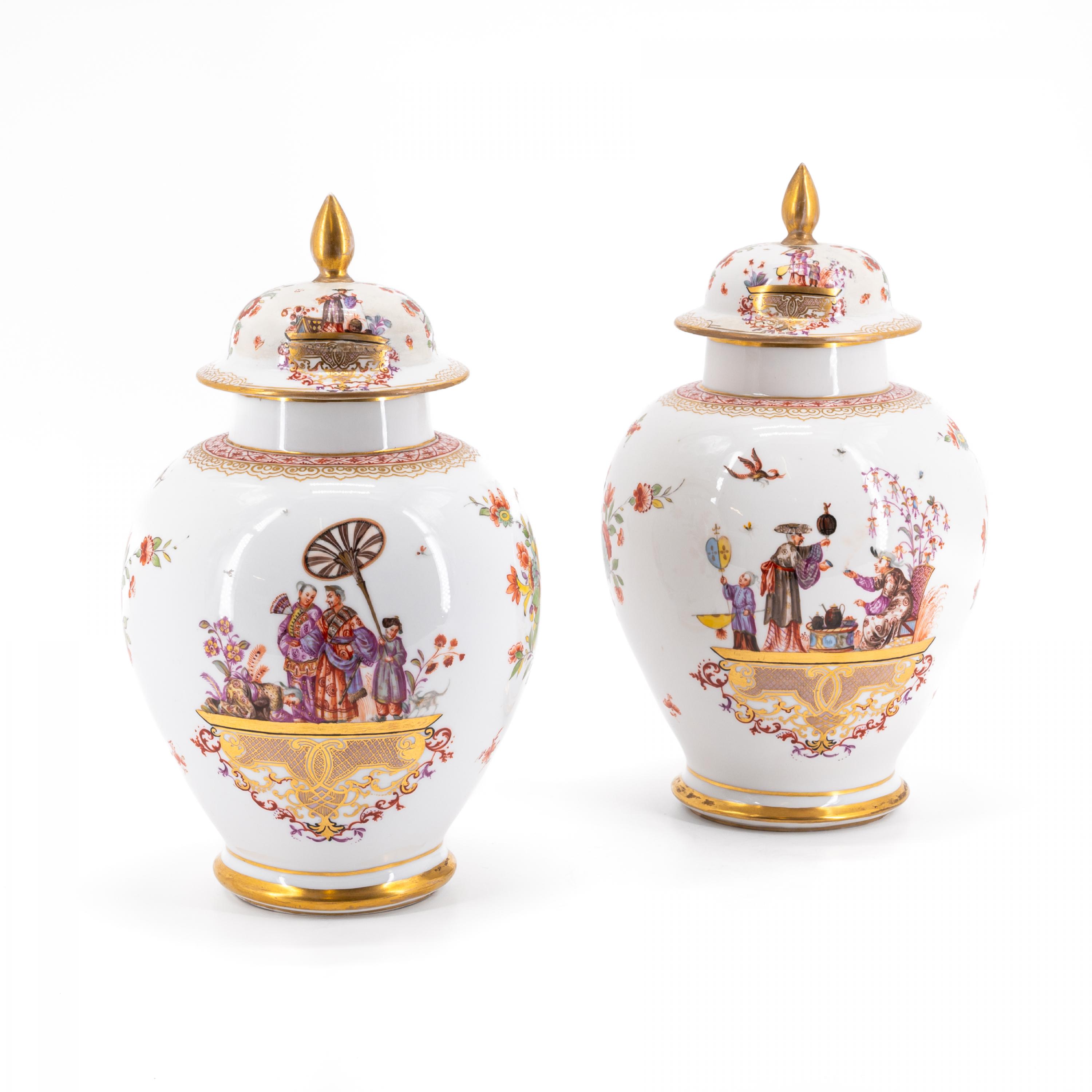 ZWEI DECKELVASEN MIT GROßEN CHINOISERIEN.