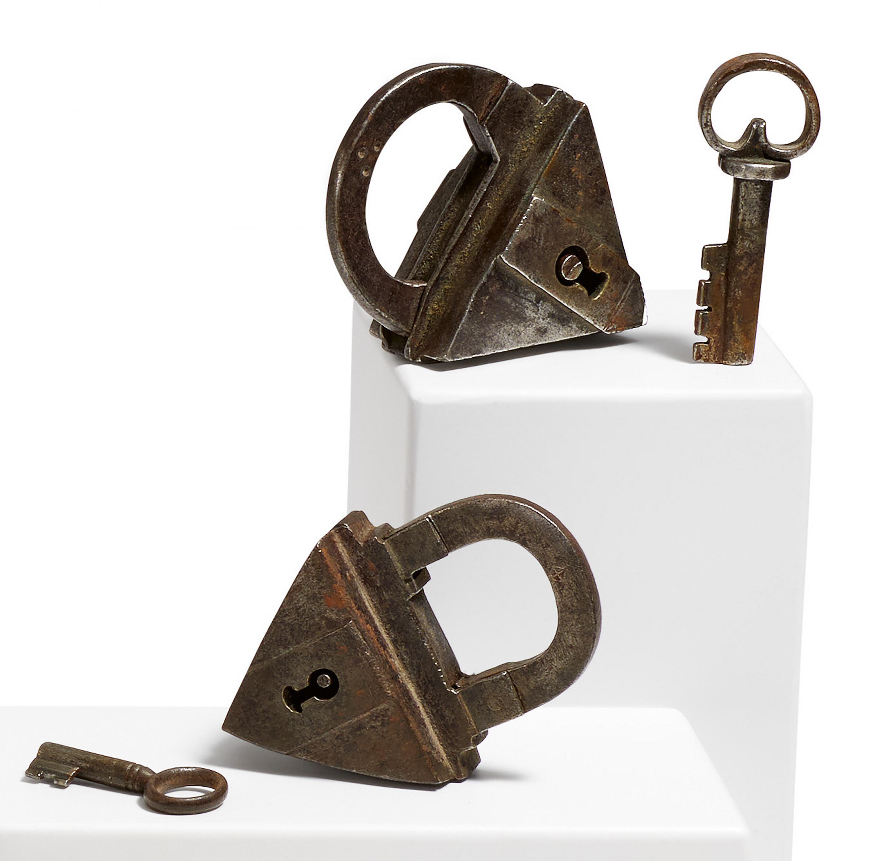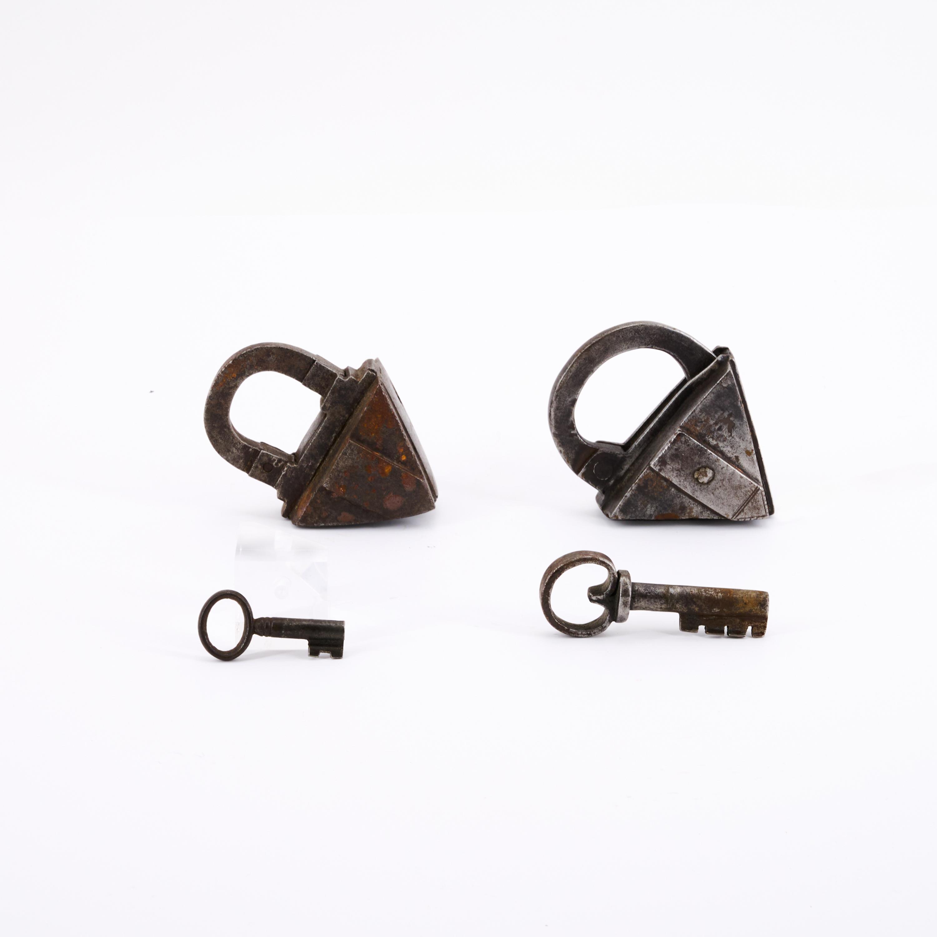 ZWEI DREIECKIGE VORHANGSCHLÖSSER.