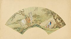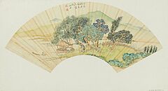 Beschreibung: a) Gelehrter in Landschaft. Im Stil des Ni Can (1764-1841). b) Frau eines nordchinesischen
