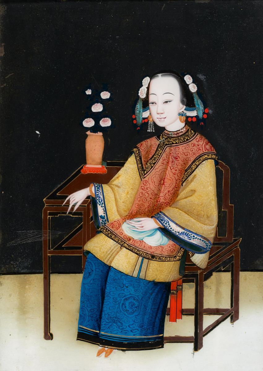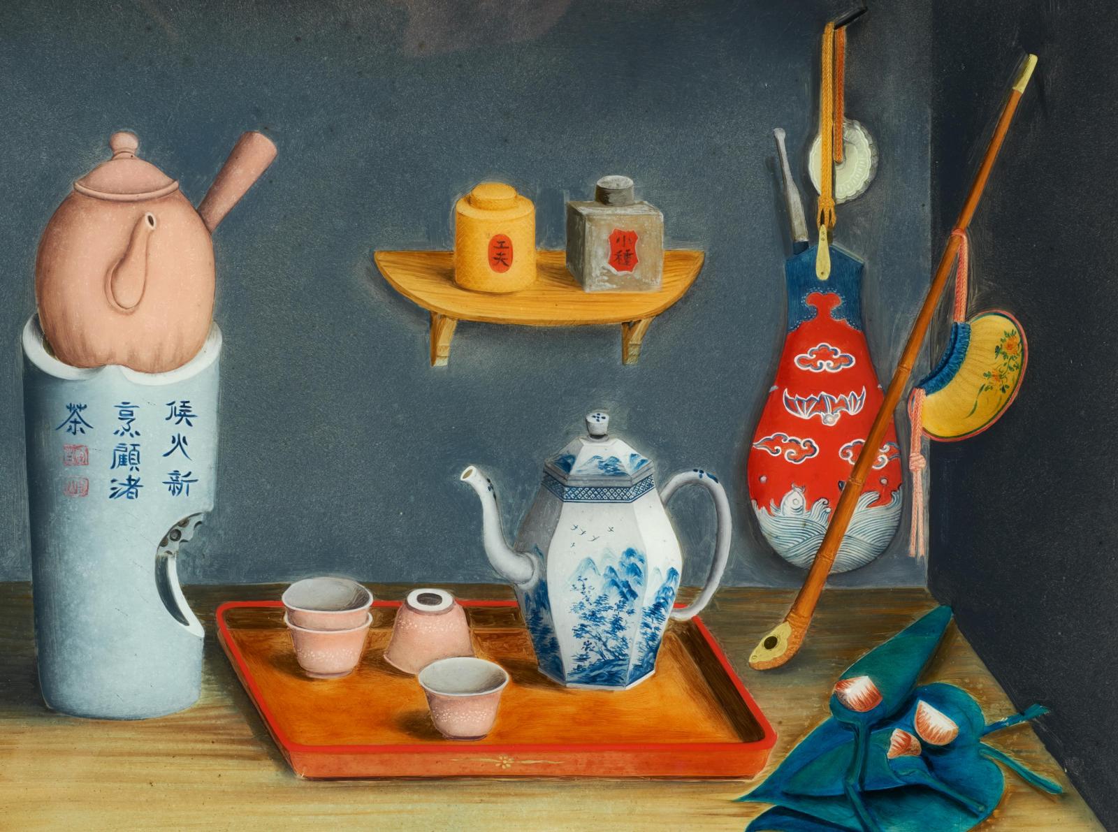 Maße: Sitzende junge Dame. Bildmaß 49,5x34cm. Teegeräte. Bildmaß 34x47cm.