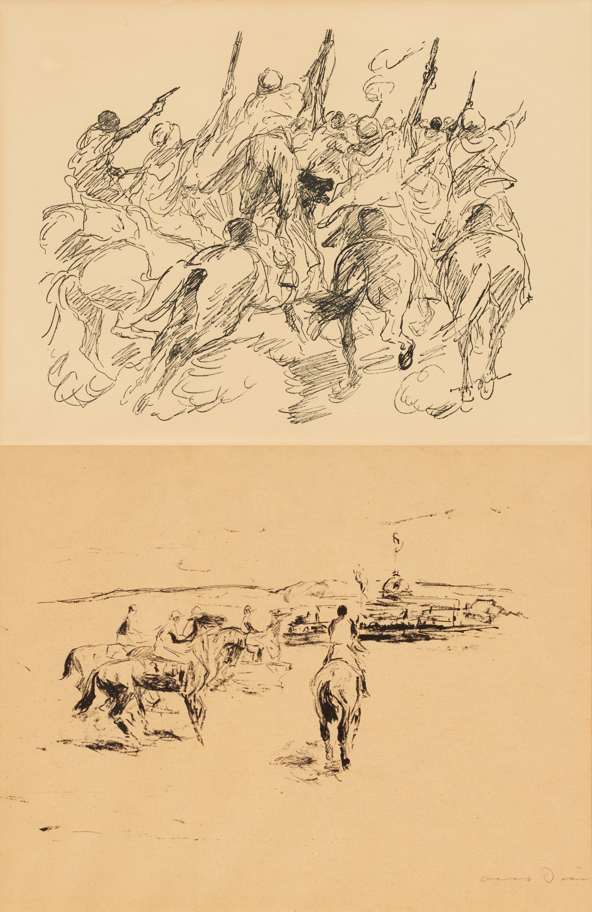 ZWEI LITHOGRAFIEN MIT REITERDARSTELLUNGEN