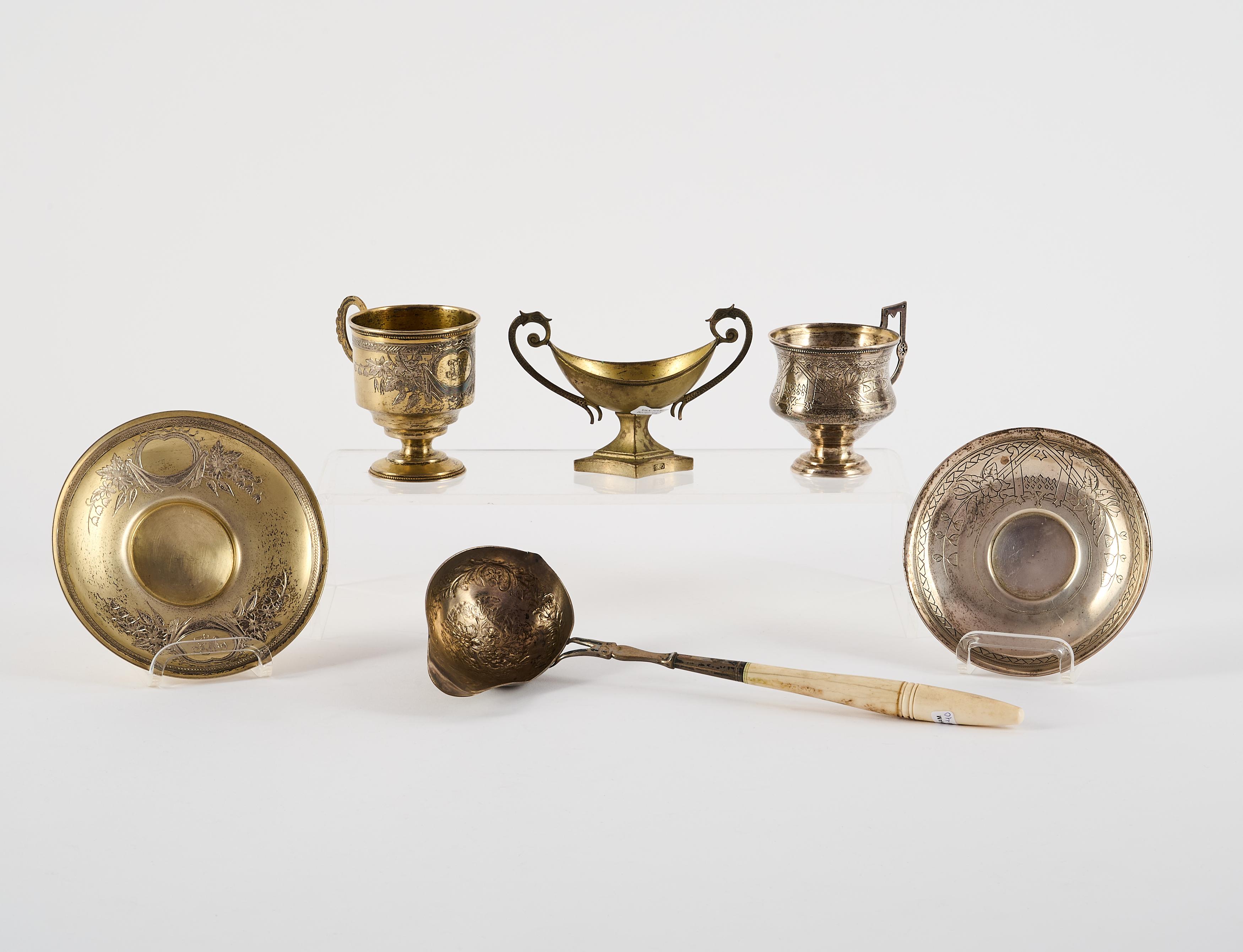 ZWEI TASSEN MIT UT, KELLE UND GEFUßTES SALZGEFÄß