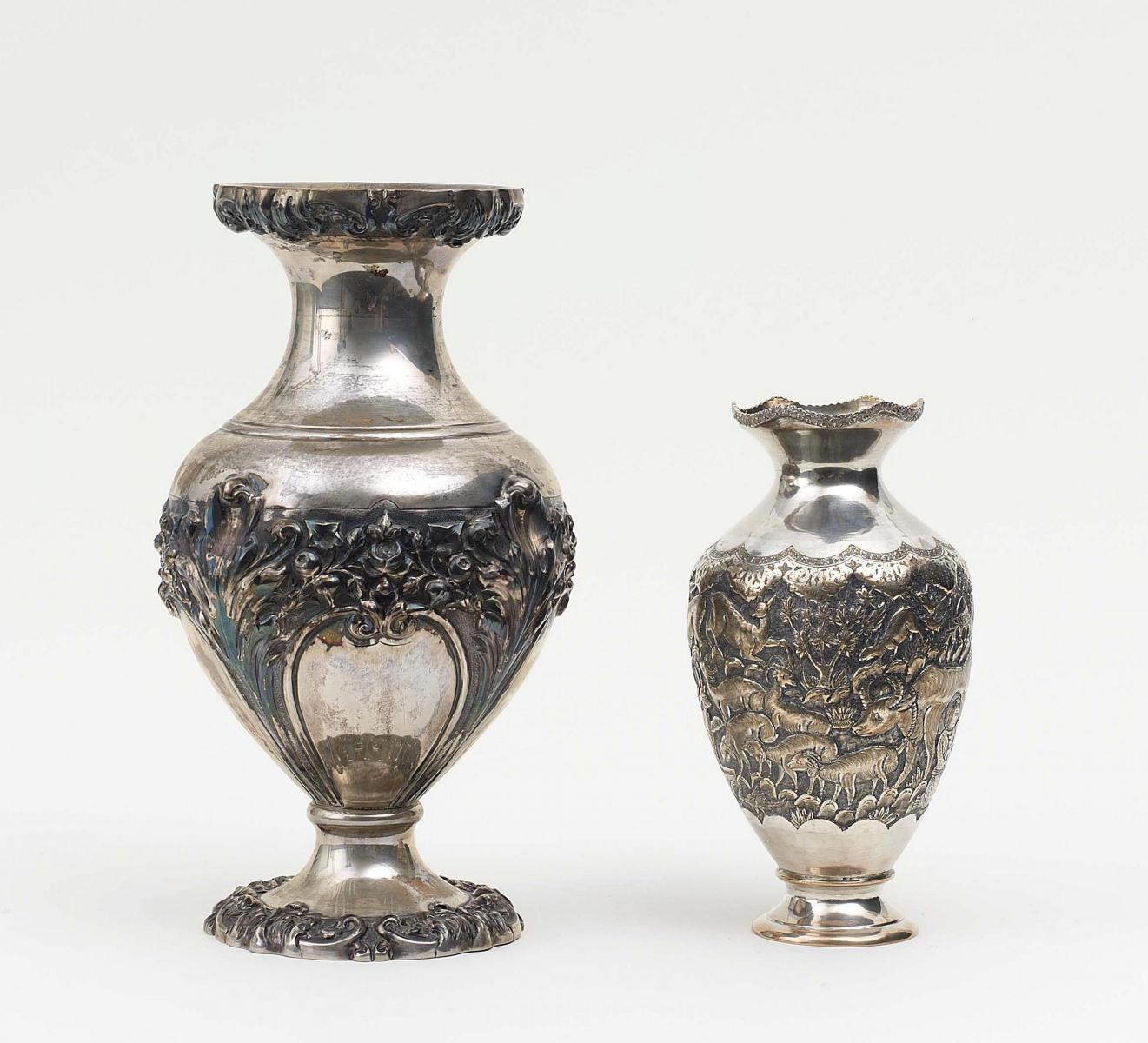 Silber, innen vergoldet. Ca. 1738g. H.23,5cm/32,5cm.