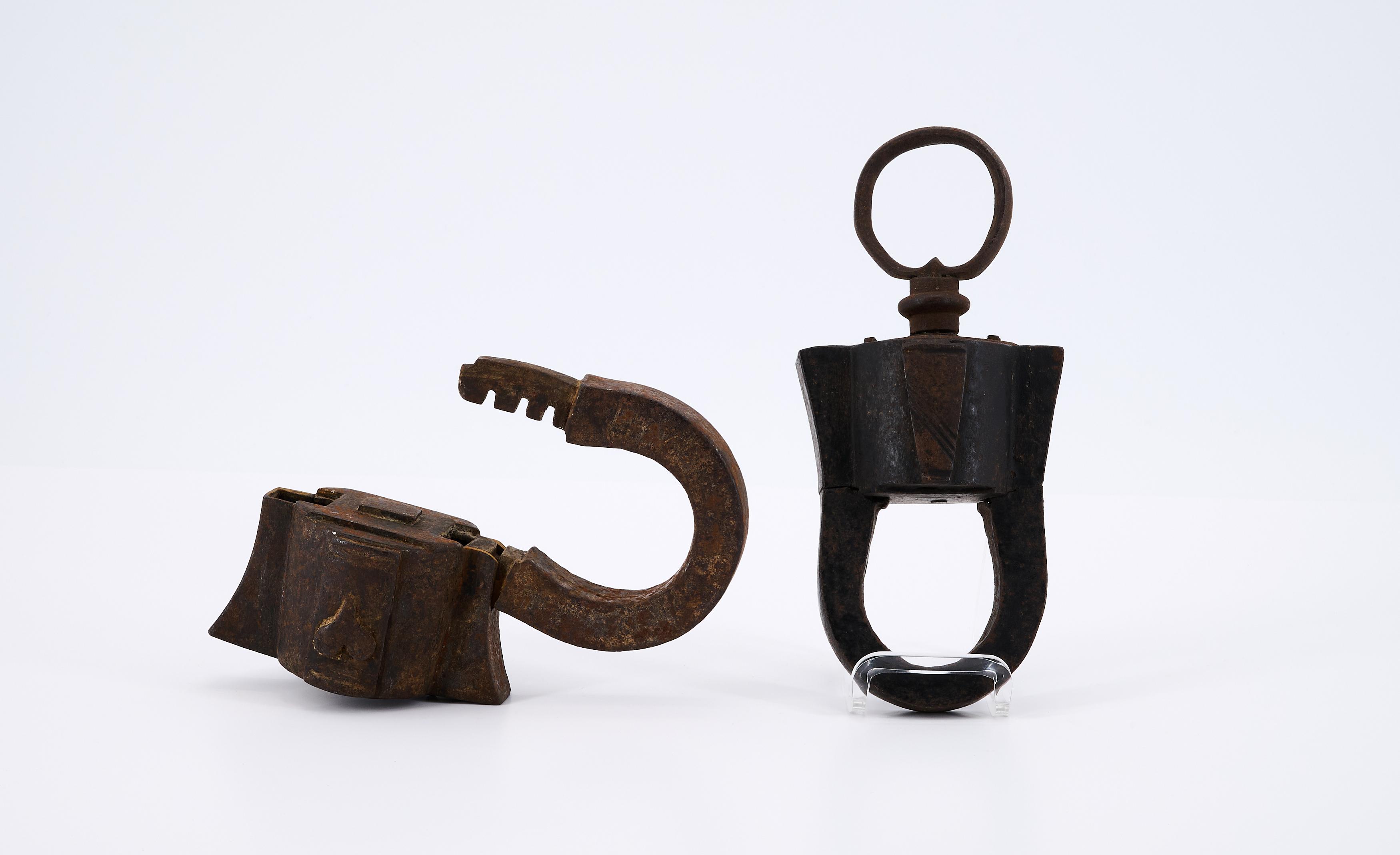 ZWEI VORHANGSCHLÖSSER MIT HUFEISENFÖRMIGEM BÜGEL