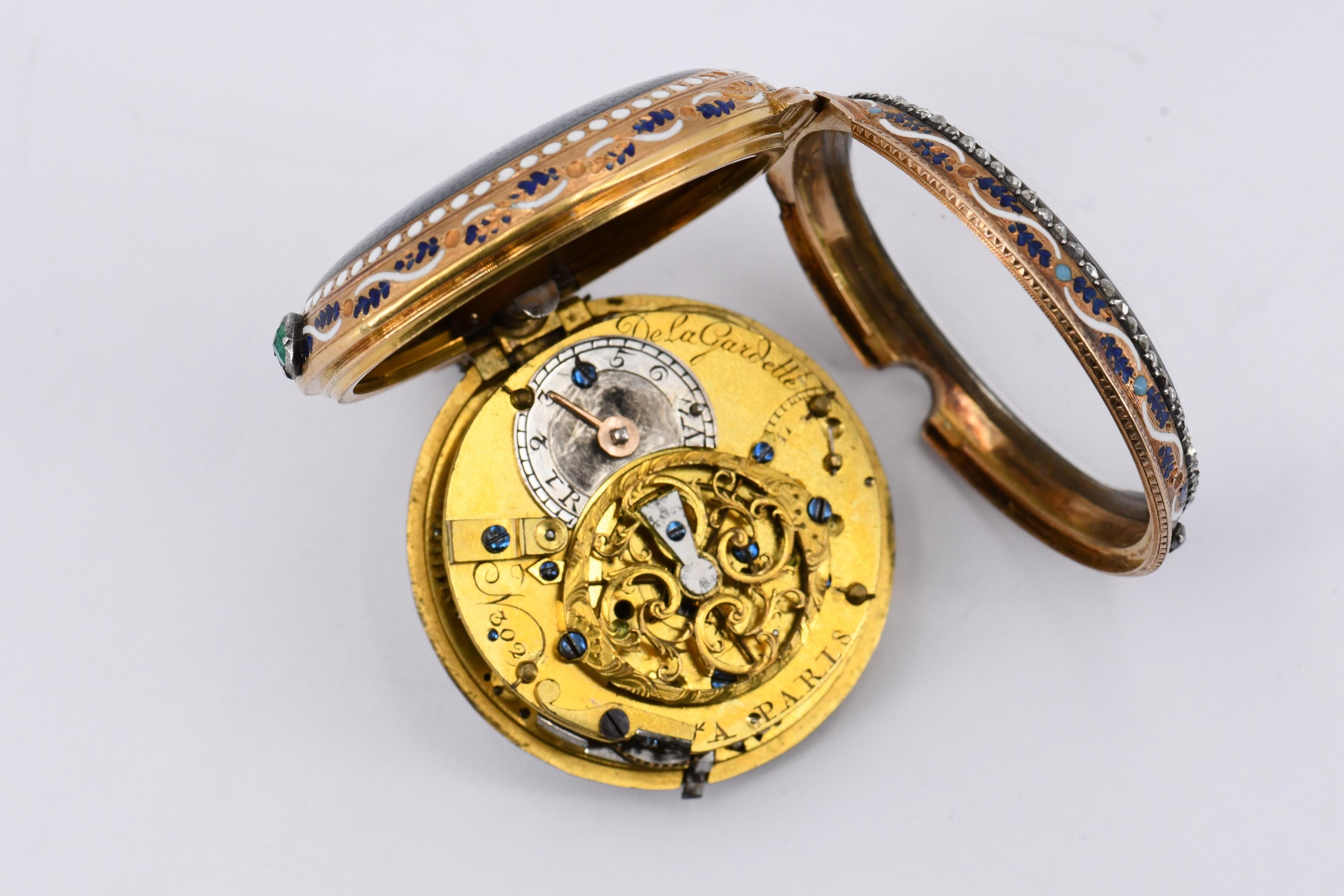 Beschreibung: Vollplatinenwerk mit Spindelhemmung, Repetition à Toc (Klopfrepetition der