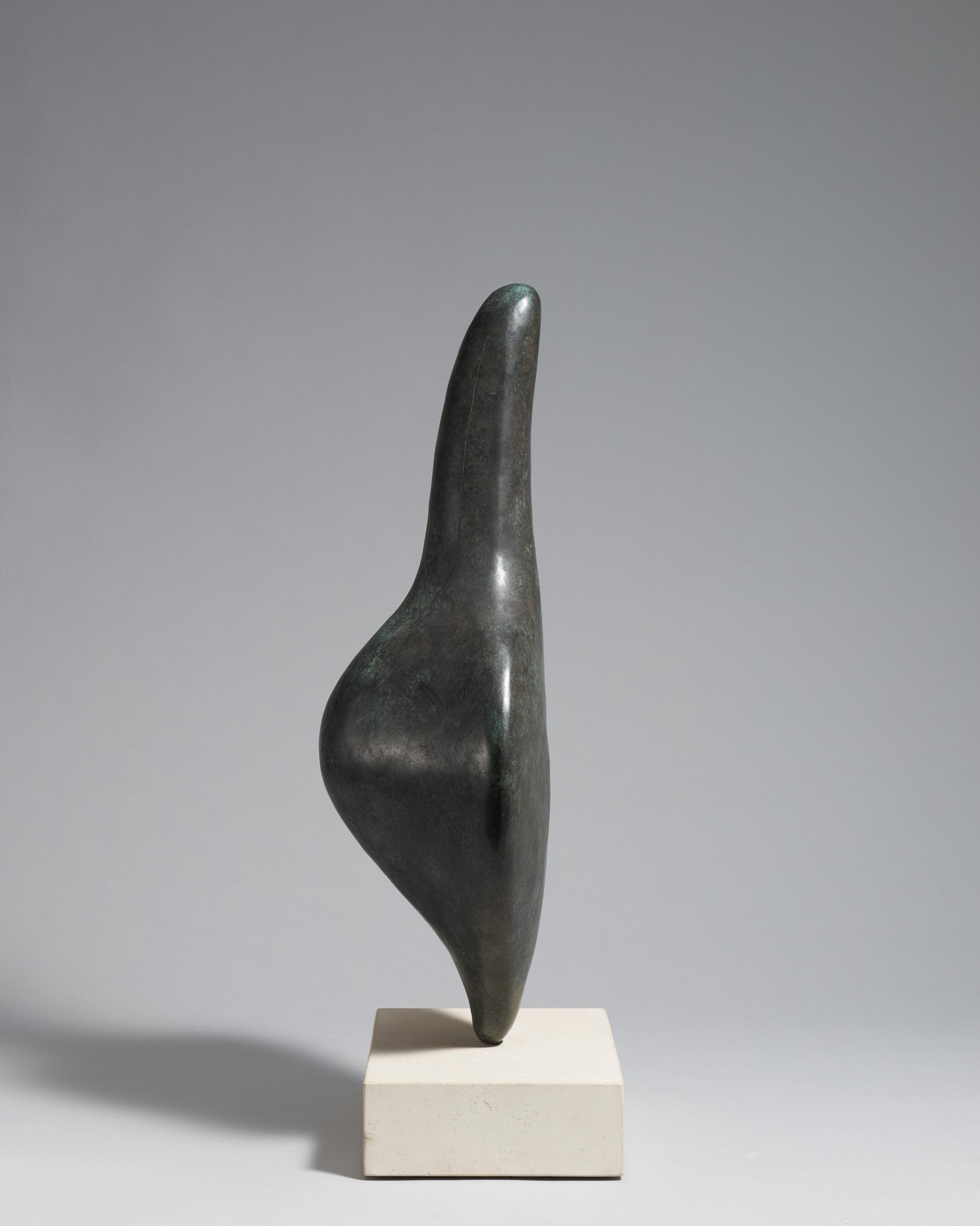 Das hier vorgestellte Werk besticht durch elegant in Szene gesetzte und auf das Wesentliche reduzierte organischen Formen. Sie zeugen von Turnbulls Auseinandersetzung mit der Natur und erinnern an abstrakte Gebilde à la Arp. Der Surrealismus inspirierte Turnbull, der von 1948 bis 1950 in Paris lebte, aber auch die Künstlerkollegen Constantin Brancu?i sowie Alberto Giacometti, die er dort kennen und schätzen lernte. Die biomorphe Darstellung unseres Werks erinnert an einen schwangeren Frauentorso, was durch den Titel noch unterstrichen wird. Mit "Leda" verweist der Künstler auf die mythologische Figur, die gleichzeitig von Zeus und von ihrem Ehemann geschwängert wurde und namhafte Kinder zur Welt brachte, die in den trojanischen Kriegen Geschichte schrieben.