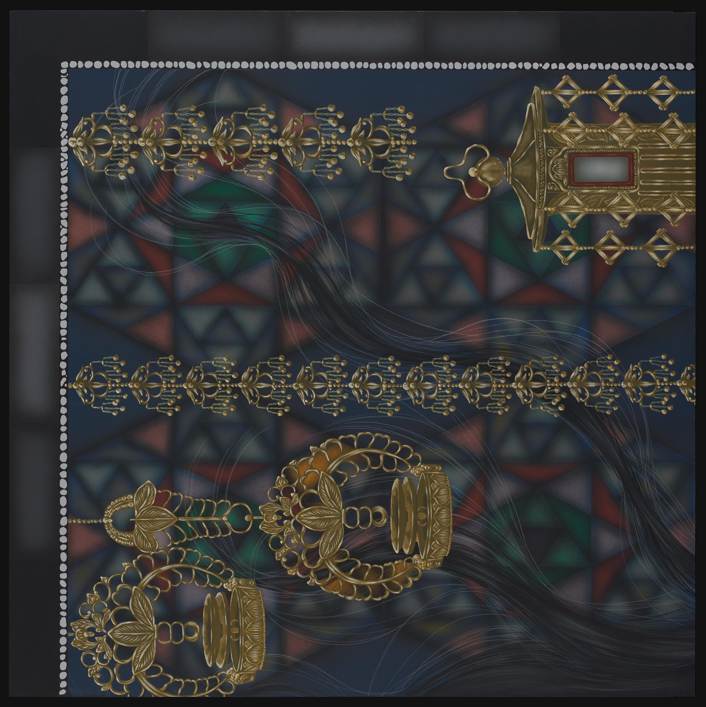 In stiller Harmonie gleitet die Protagonistin hinab in die Traumwelt. Den Übergang in die Traumwelt stellt sie hier als einen Fall dar. Dadurch evoziert Nachi das unheimliche Gefühl des Fallens, dass viele Menschen aus der eigenen Erfahrung beim Einschlafen kennen. Die eher dunkel gehaltene Farbgebung des Gemäldes gibt dem Werk eine melancholische Note und durch die goldenen, ornamentalisch geprägten Elemente im Bild erhält das Werk eine weitere, tiefgründige Ebene.