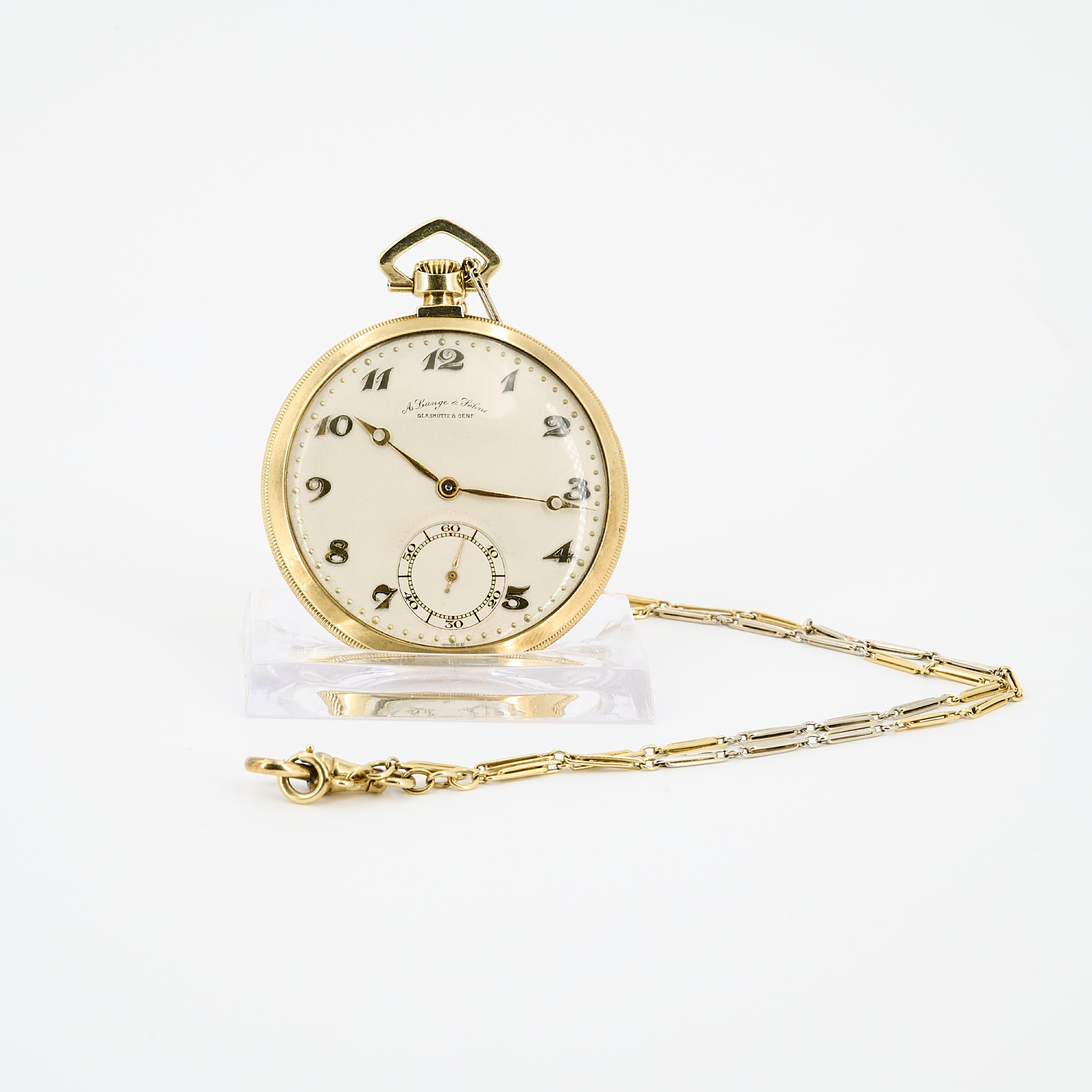 Gehäuse/Armband: 585/- Gelbgold, Zffbl. weiß, Zeiger golden, aufgesetzte arabische Indizes.