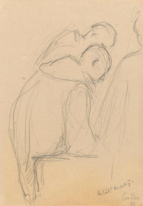 "Urteilsberatung". 1946. Bleistift auf dünnem chamoisfarbenen Papier. 30 x 21cm. Signiert und datiert unten rechts: Luther 46. Darüber betitelt.